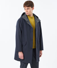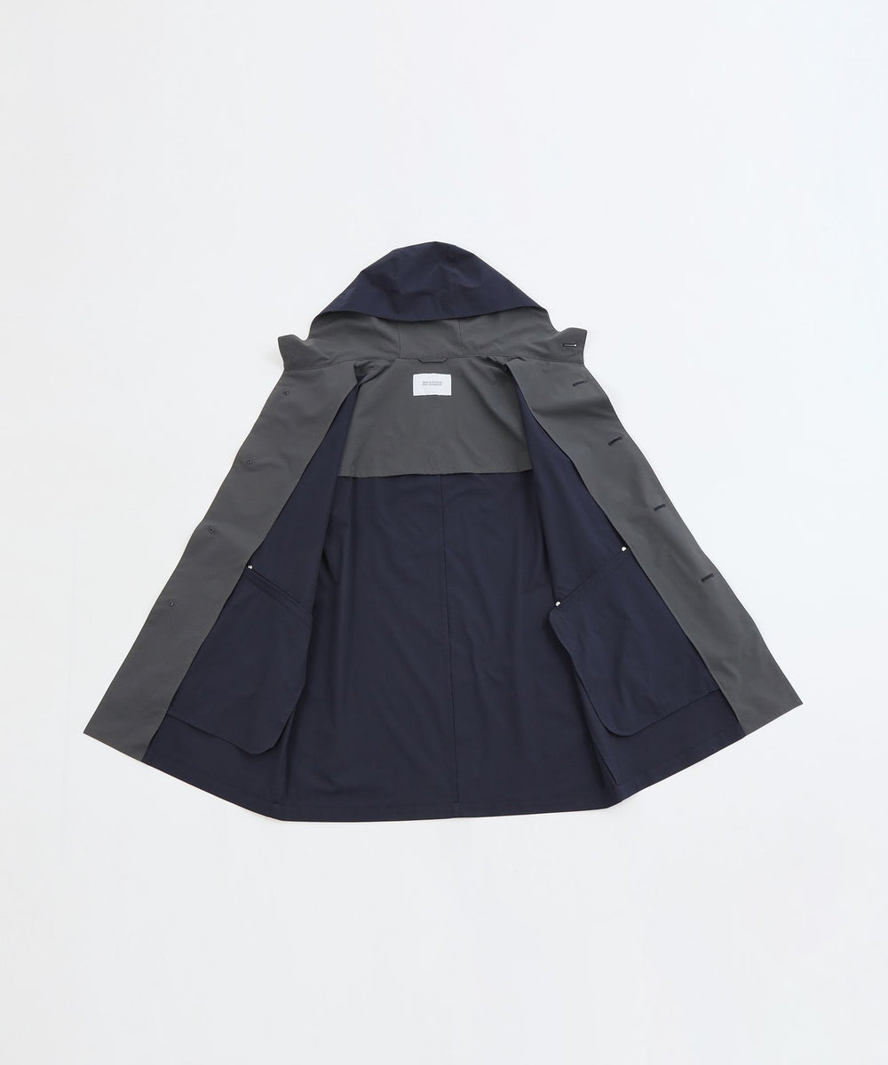 伝統的なアウターウェアのデザインを、ドロップショルダーとオーバーサイズ感で、より美しいシルエットへとブラッシュアップした「BALBY(バルビー)」をベースにしたフード一体型モデル。バイカラーの配色を活かしたデザインに幅広のAラインシルエット。ドロップショルダーのフォルムとゆとりのある袖が特徴です。フラップ付き腰ポケットなど、ホースライディングコートのディテールを巧みに取り入れています。立体感のある3枚接ぎが特徴の、一体型のフードデザインです。