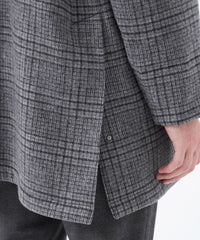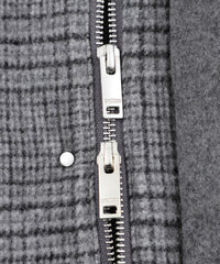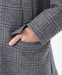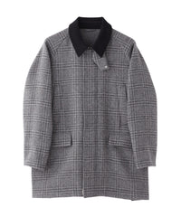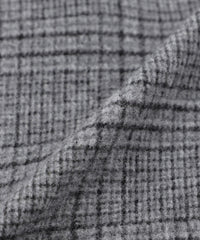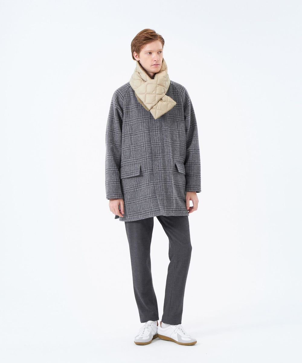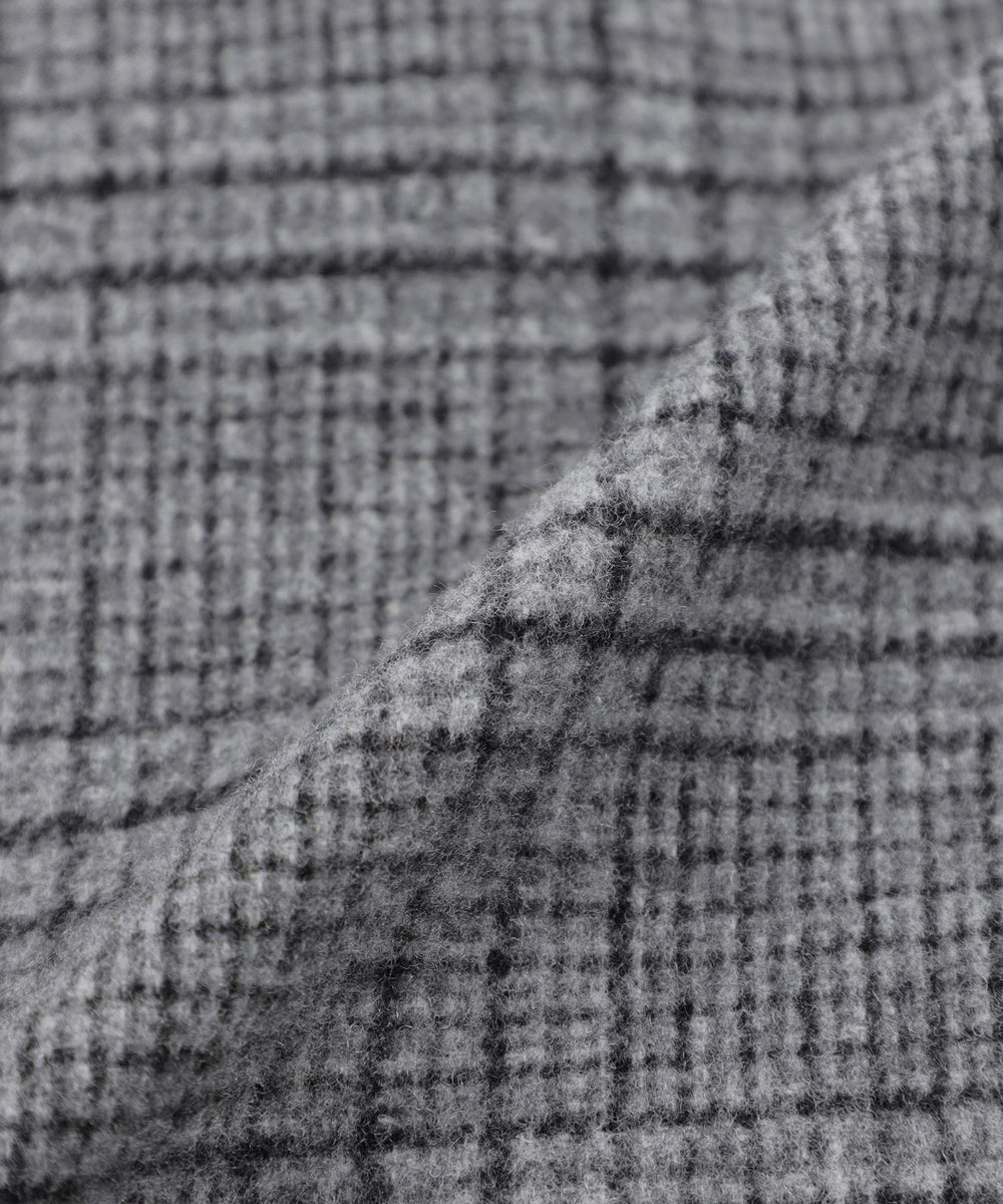 ウール/ナイロンの二重織ダブルフェイスモッサー生地を使用。両面をモッサー仕上げにすることでボリューム感があり、 軽量で手触りの柔らかさが特徴。マッキントッシュらしく、チェック柄と無地を組み合わせたオリジナル素材です。