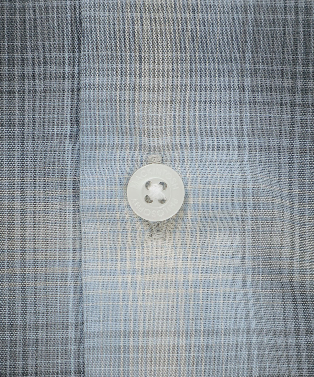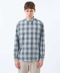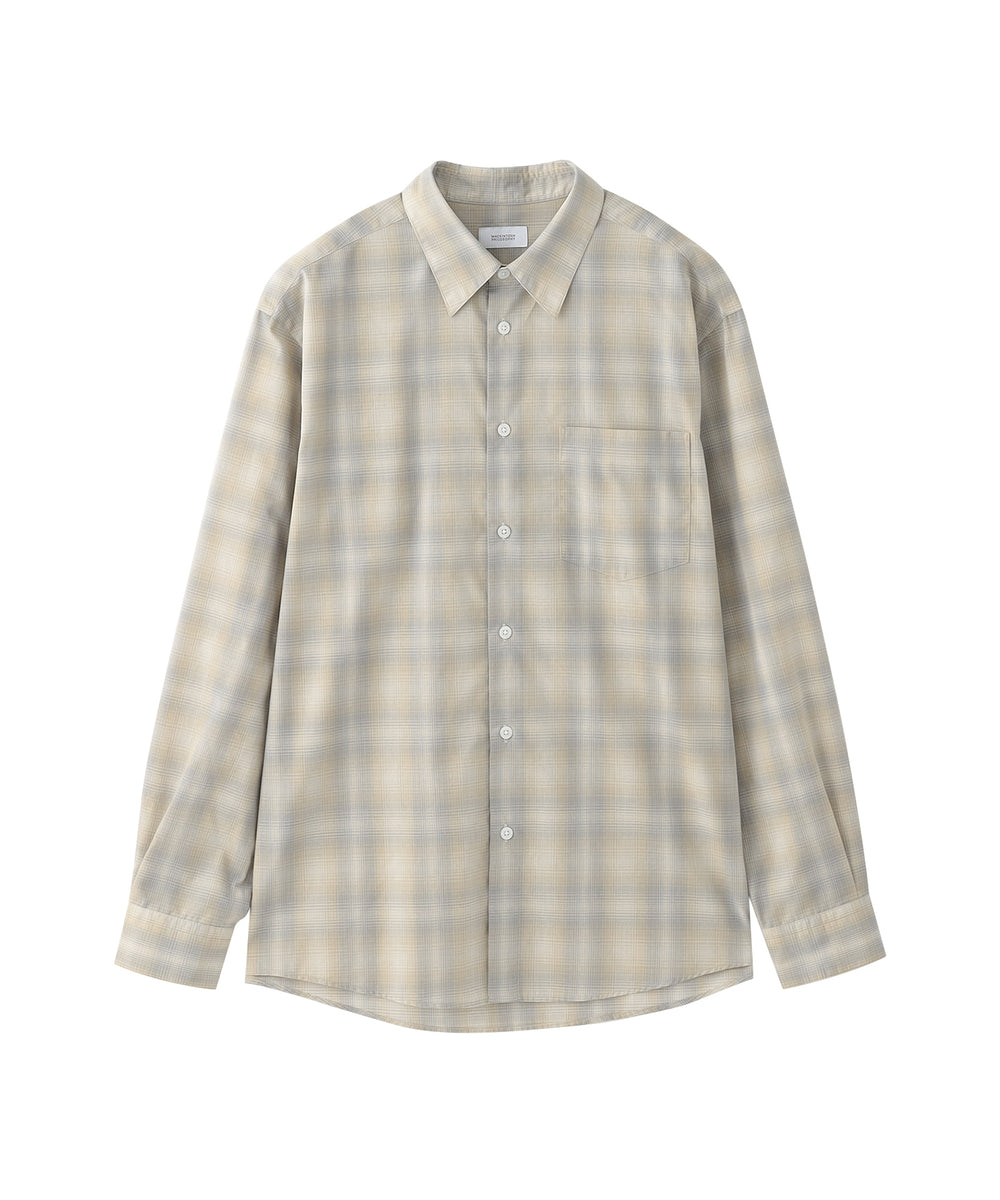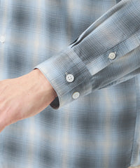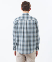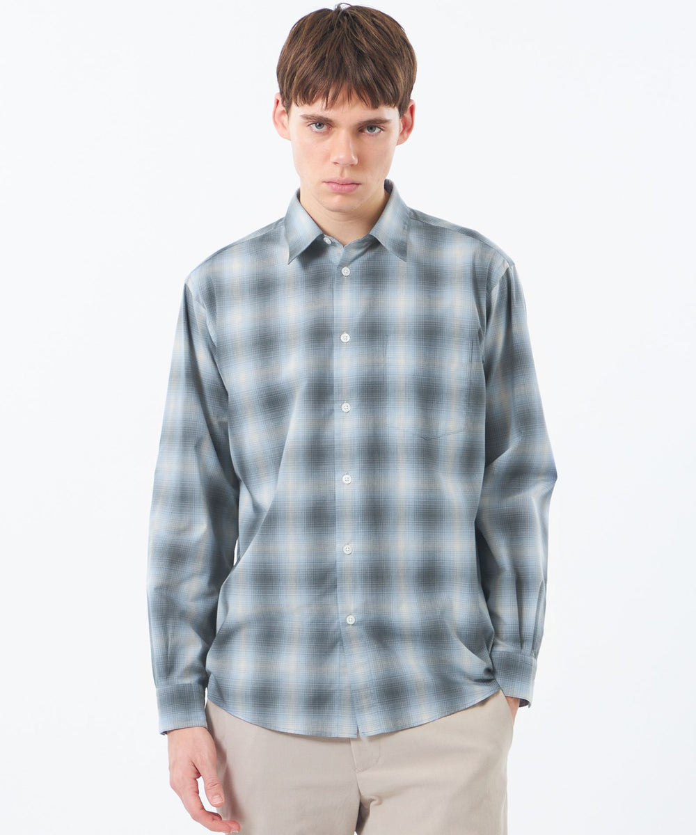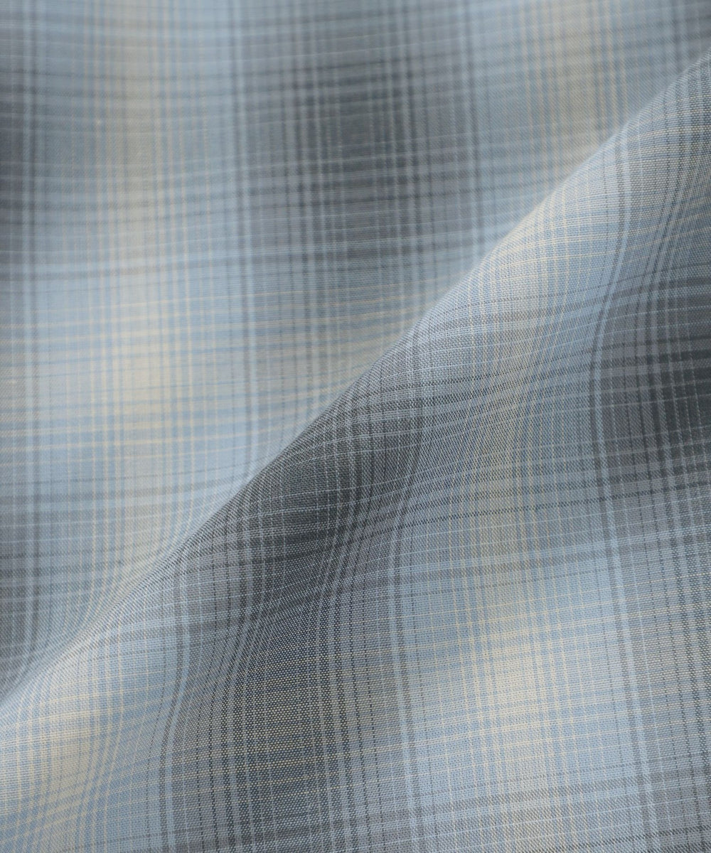 色の濃淡がグラデーションになったチェック柄が特徴のオンブレチェック生地を使用。柔らかな色調で広がりのあるグラデーションチェックが魅力です。ポリエステルと綿をブレンドし、適度なハリ感があり、肌あたりの良い素材です。