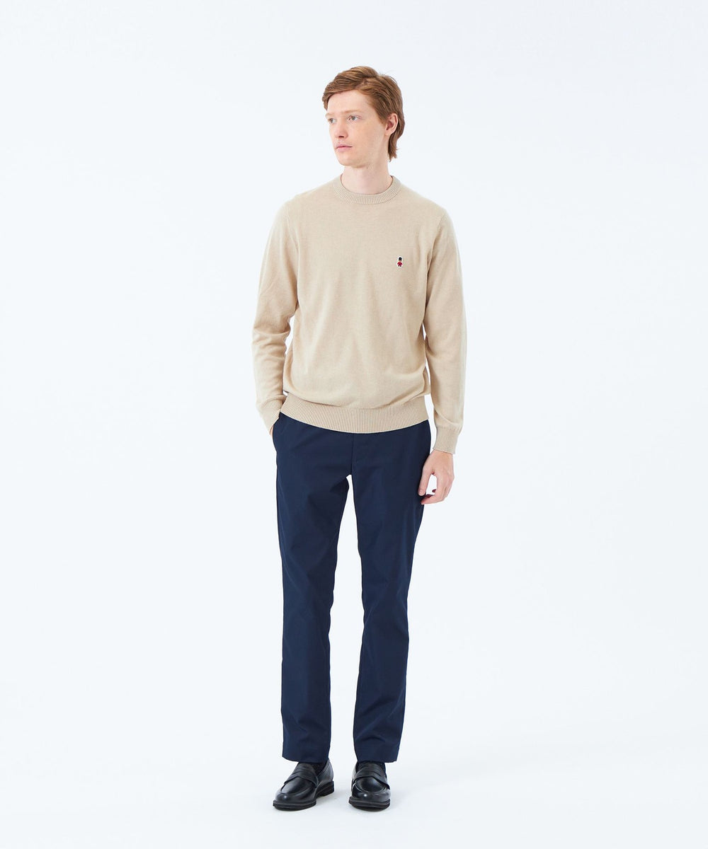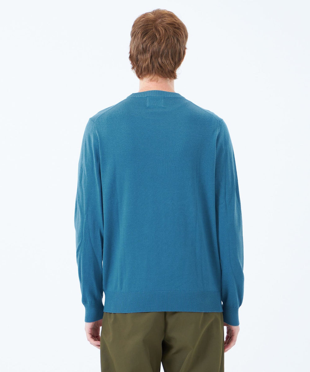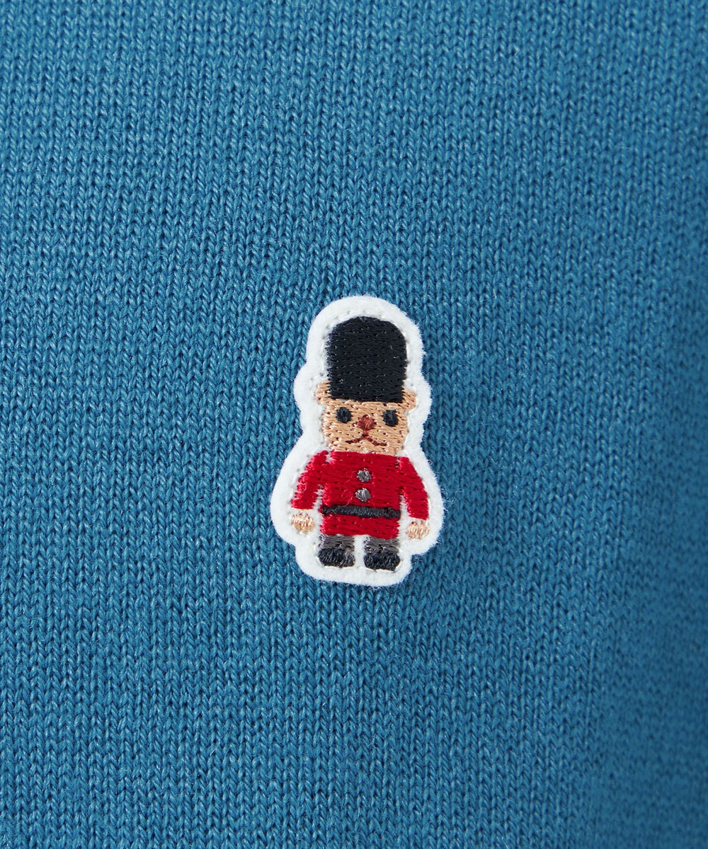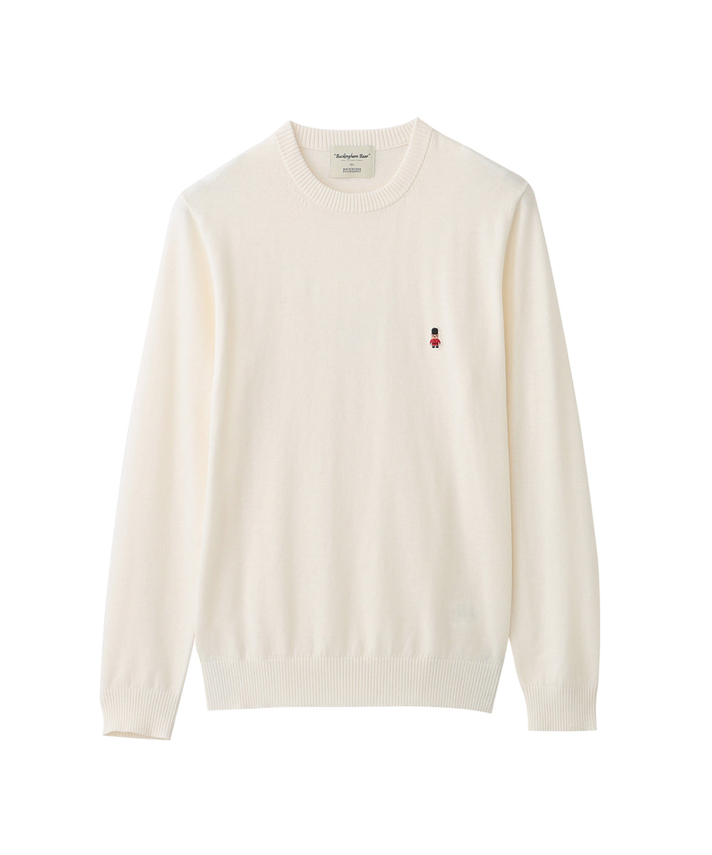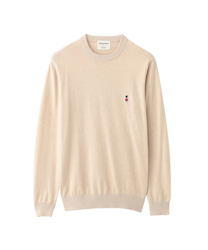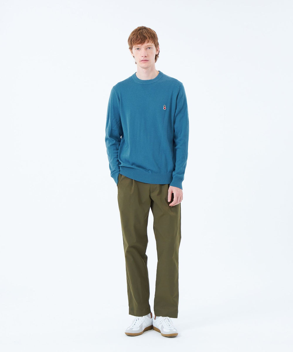 プレーンなクルーネックプルオーバーデザインのニットです。胸のBEARワッペンがワンポイントアクセント。共糸で展開しているカーディガンとのアンサンブルコーデもおすすめです。