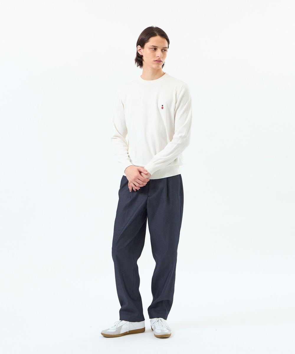 胸元のBEARワッペンがポイントの汎用性の高いクルーネックニット