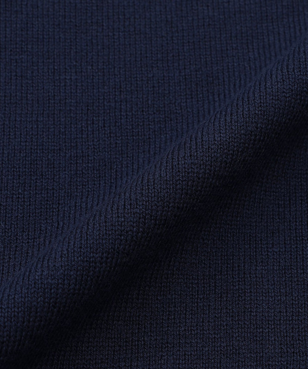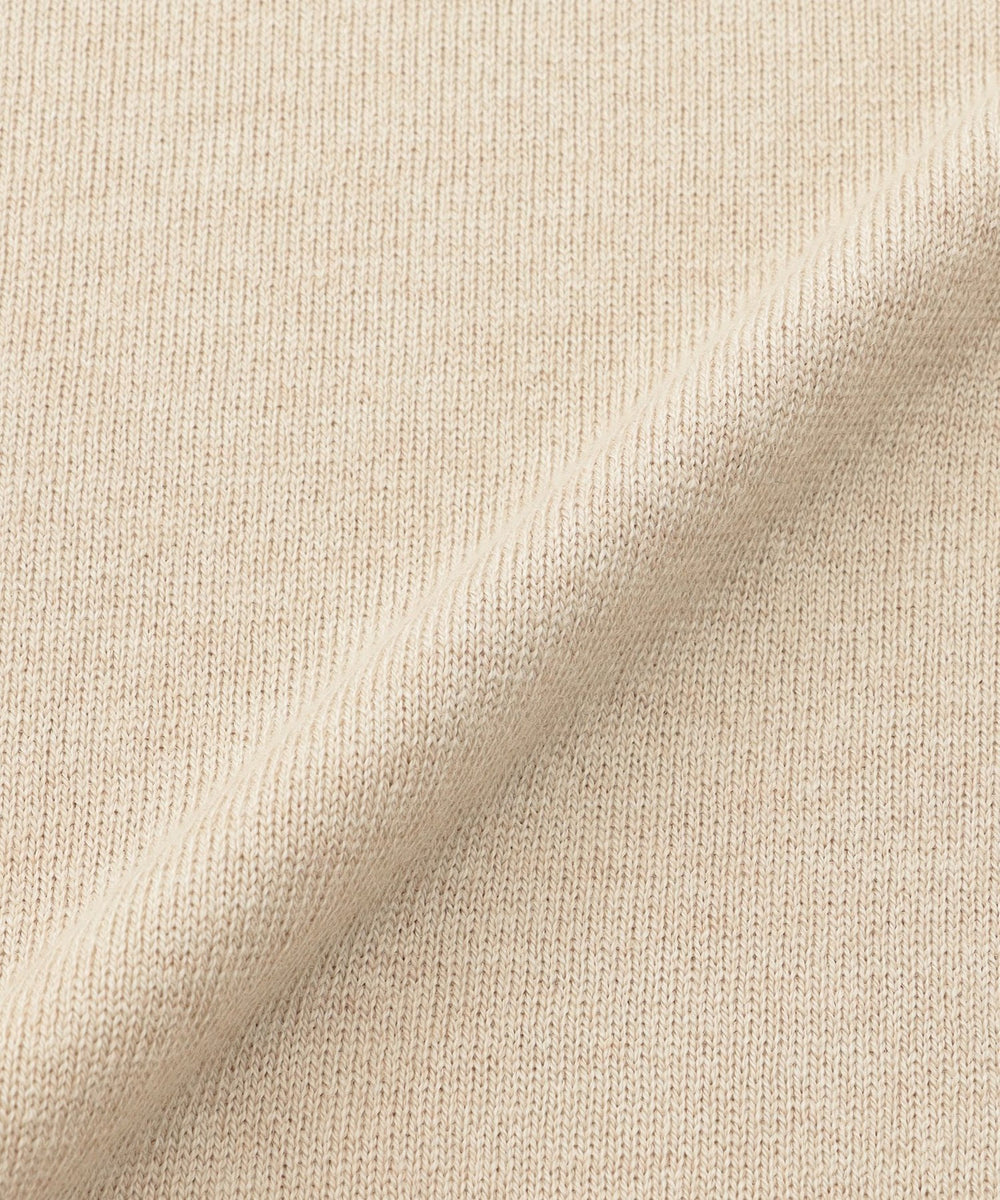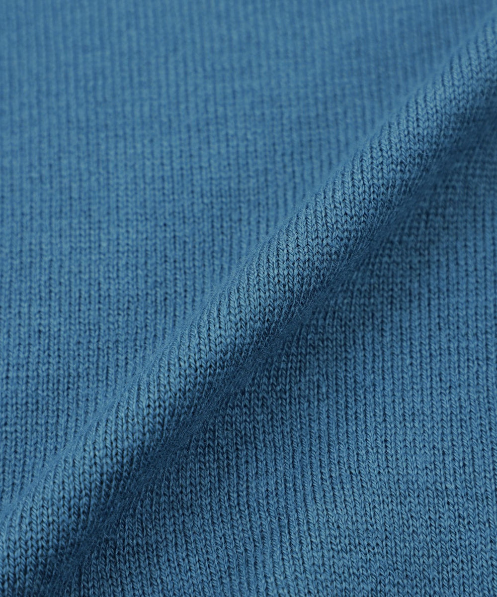 綿50%毛50%の糸を使用しています。綿は通気性や吸湿性に優れ、ウールは保温性に優れているため、一枚着やインナーとして長く着用いただけます。