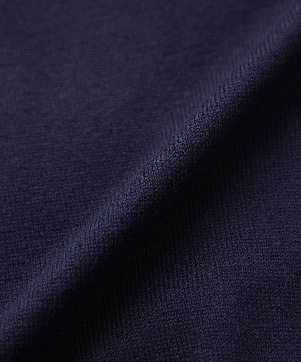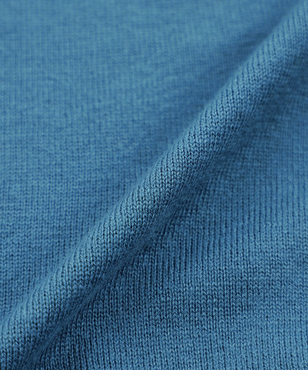 綿50%毛50%の糸を使用しています。綿は通気性や吸湿性に優れ、ウールは保温性に優れているため、一枚着やインナーとして長く着用いただけます。