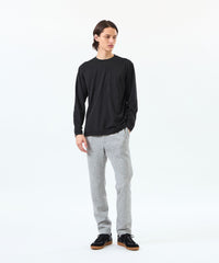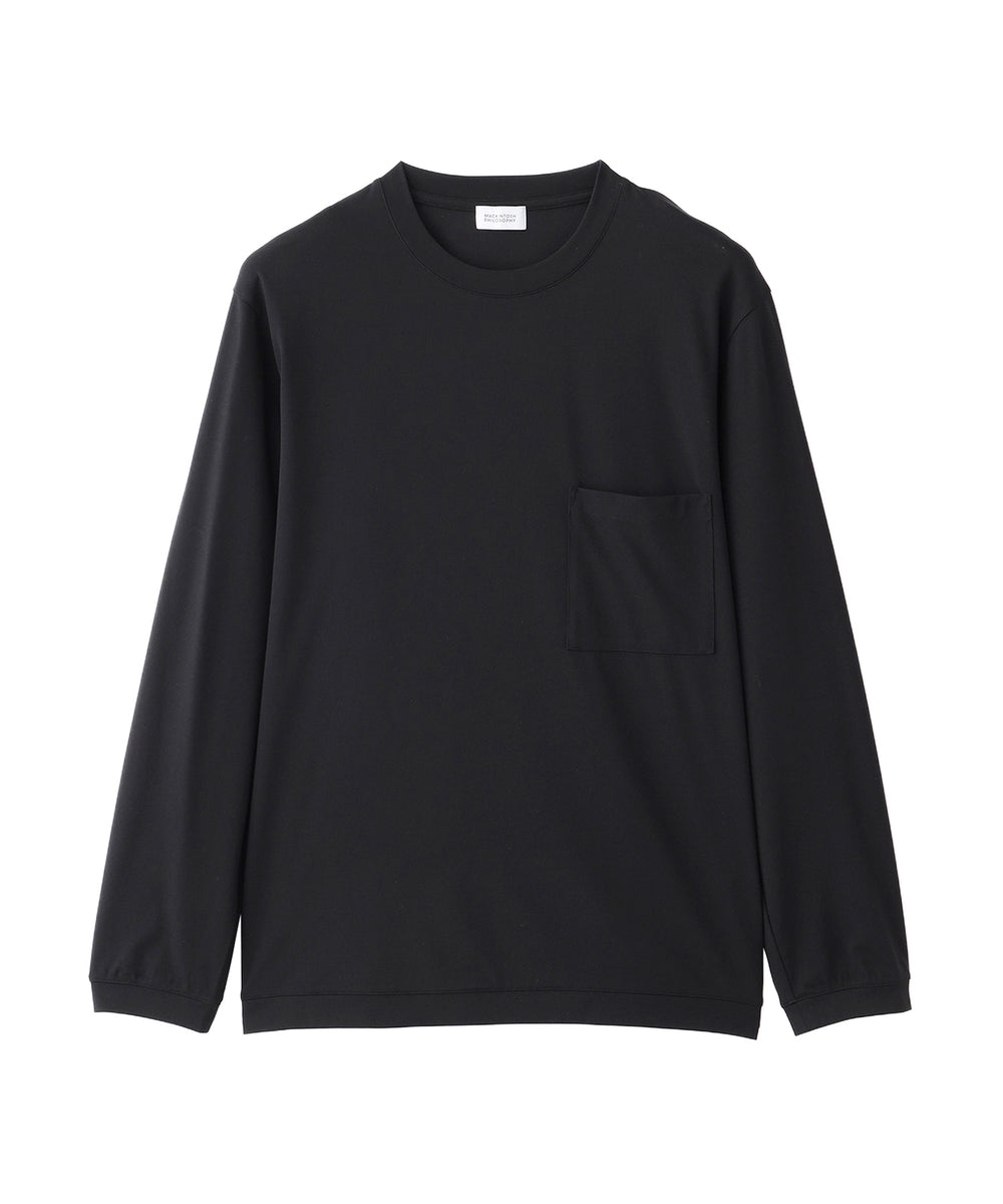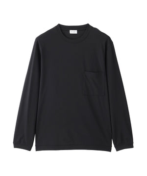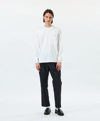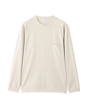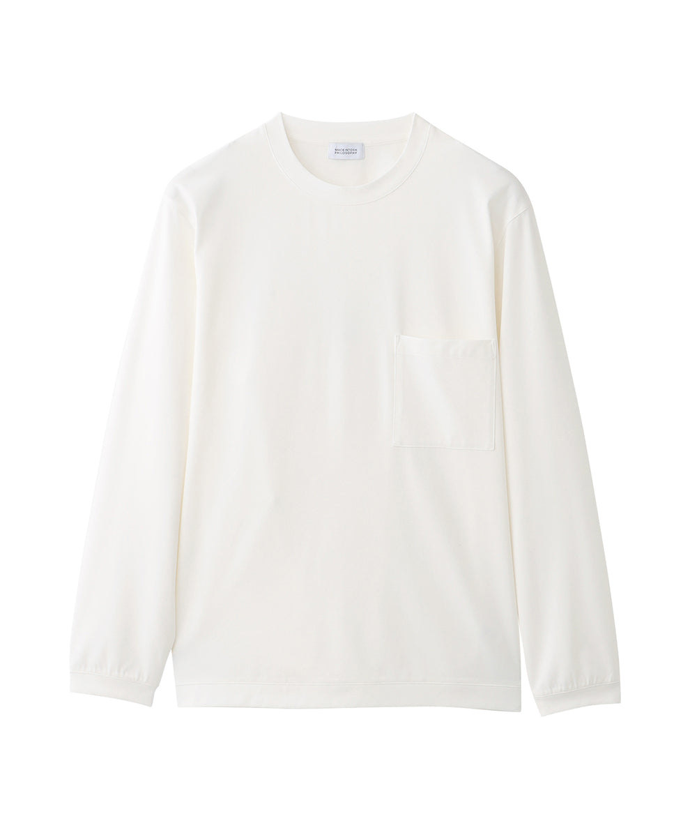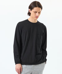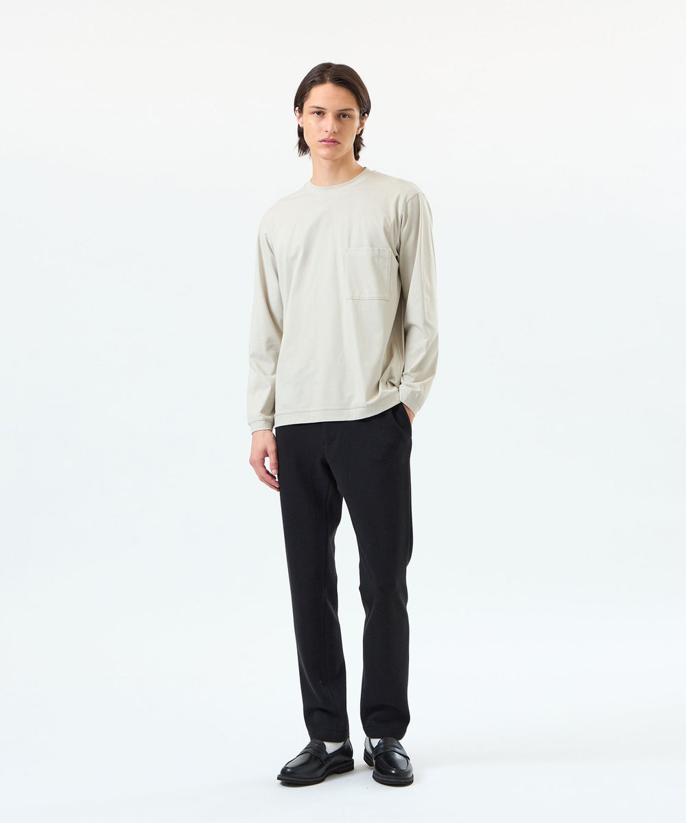 ジャケット等が重ね着しやすいようなサイズ感に仕上げたポケット付きロンT。コバステッチ+オーバーロック縫製で裏面の縫い代の分量感を抑えることで着心地の良さを実現し、見た目もスタイリッシュな印象に仕上げています。