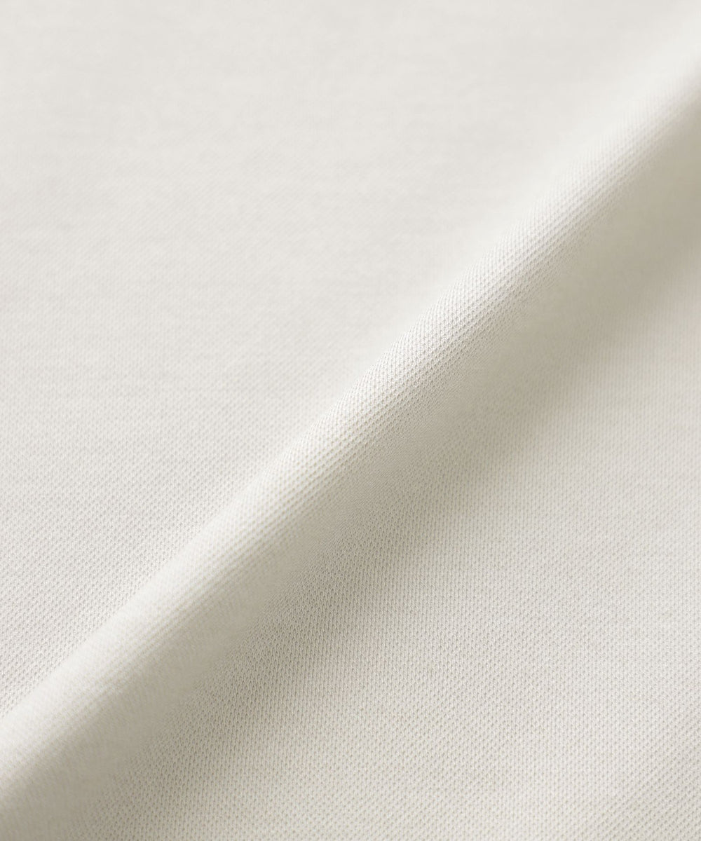 ナイロン・レーヨン使いのベアスムース素材。微光沢とソフトな風合いがあり、ハイゲージのキレイな目面とハリ感の融合した素材。キックバックもしっかりしていて、接触冷感性も備えています。