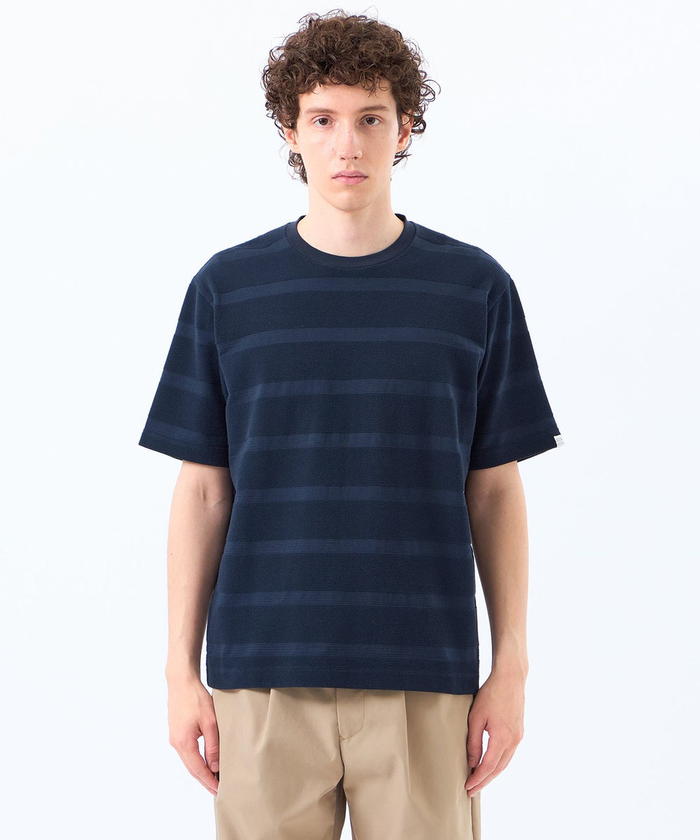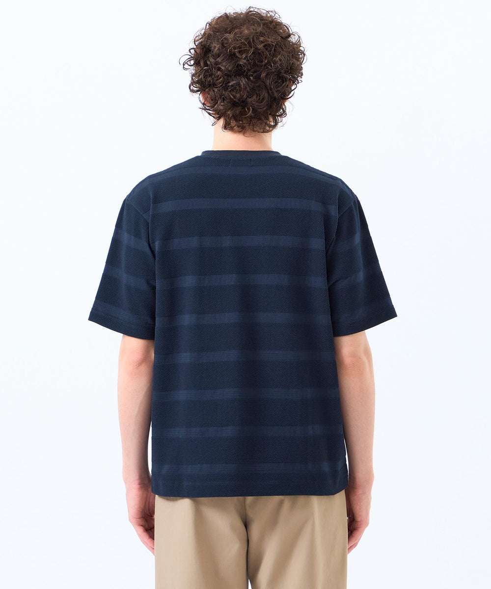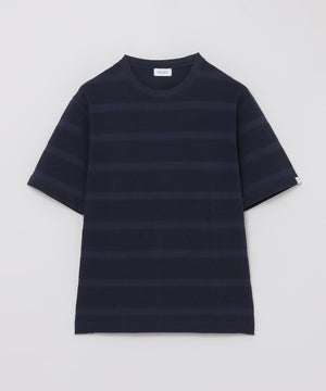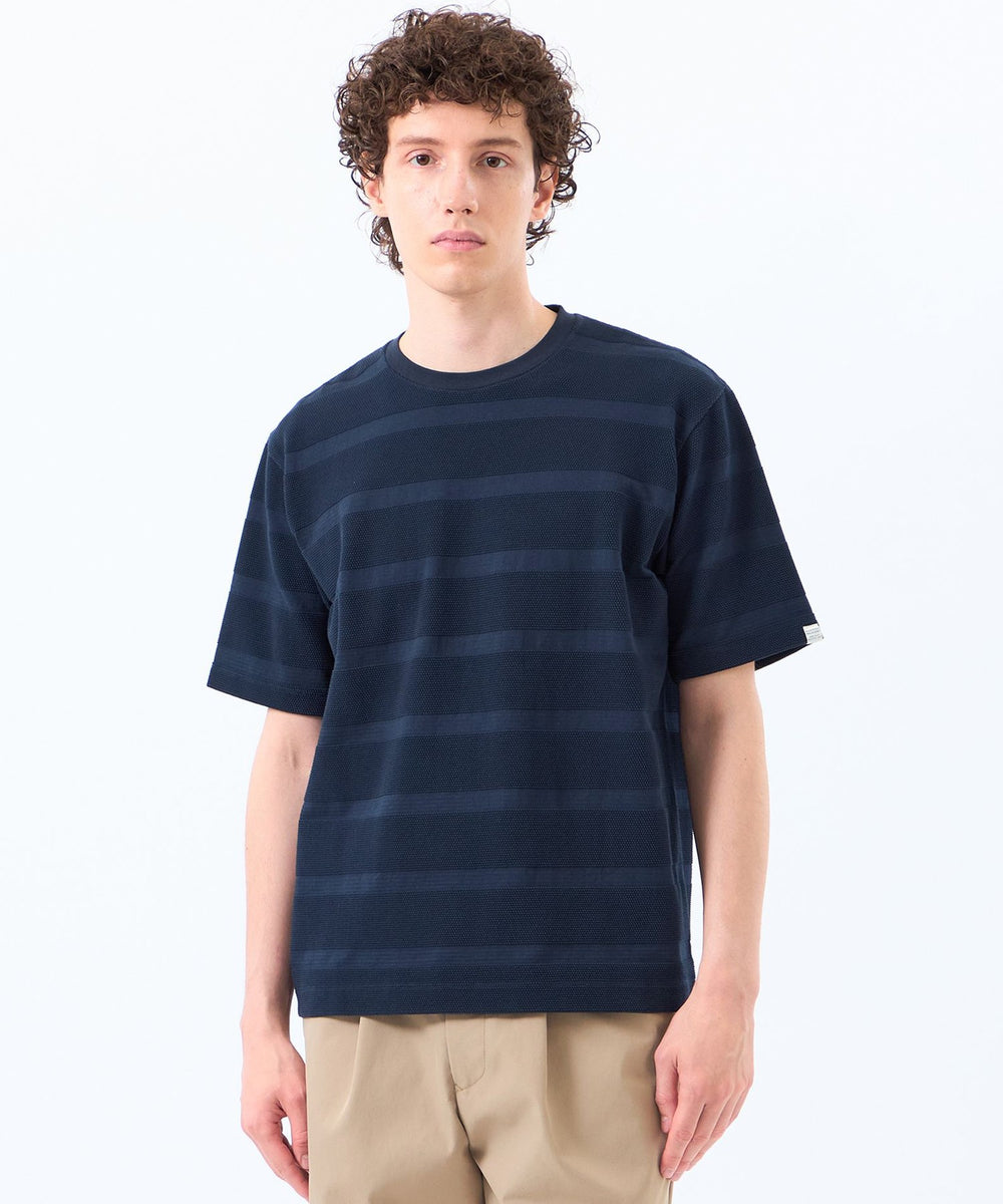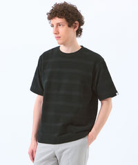 凹凸感のあるシャドーボーダー素材の半袖Tシャツ