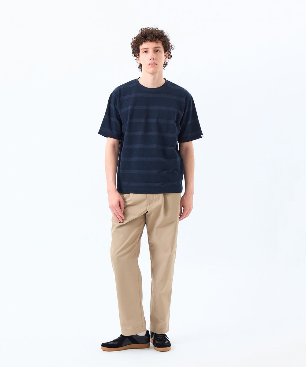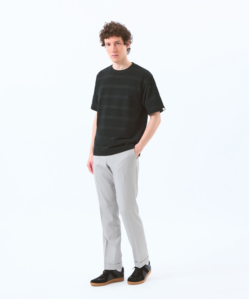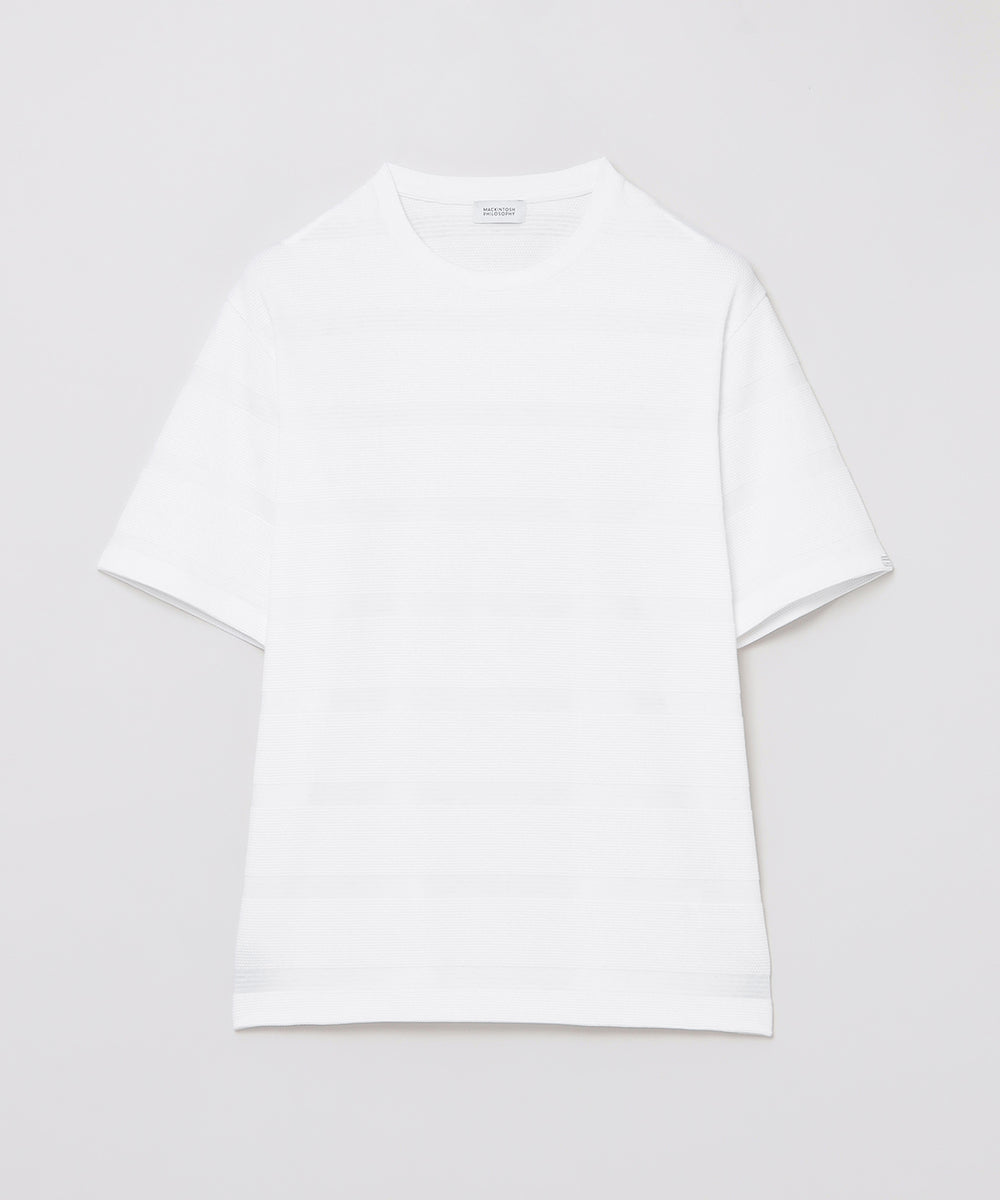 凹凸感のあるシャドーボーダー素材の半袖Tシャツ