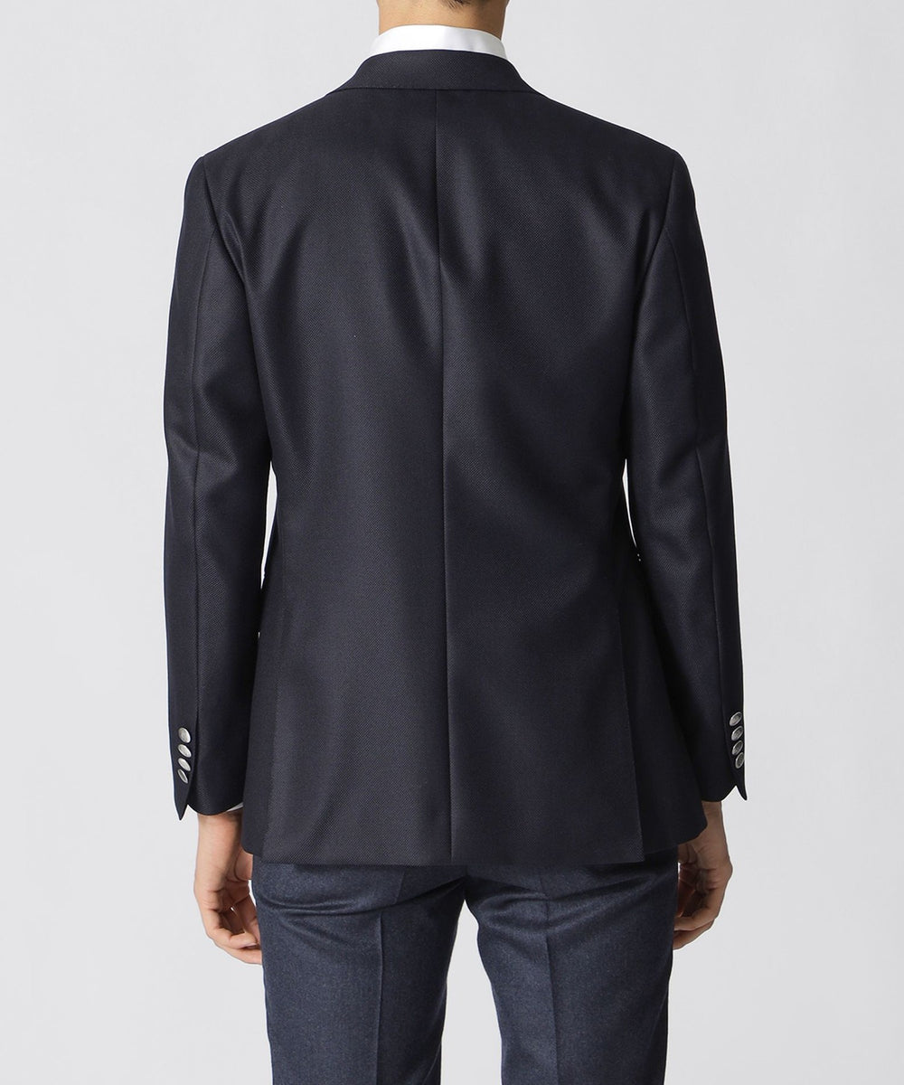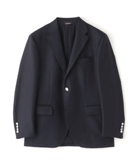 原料と品種を厳選した結果オーストラリア産原料を使用。紡績から整理まで国内の老舗毛織物メーカーにより一環で作られたポール・スチュアート拘りのホップサック素材を使用したシングルブレストブレザー。