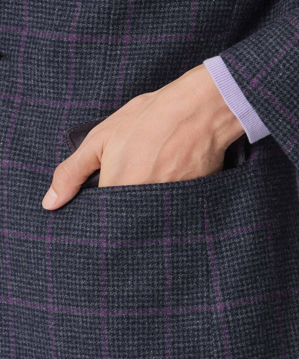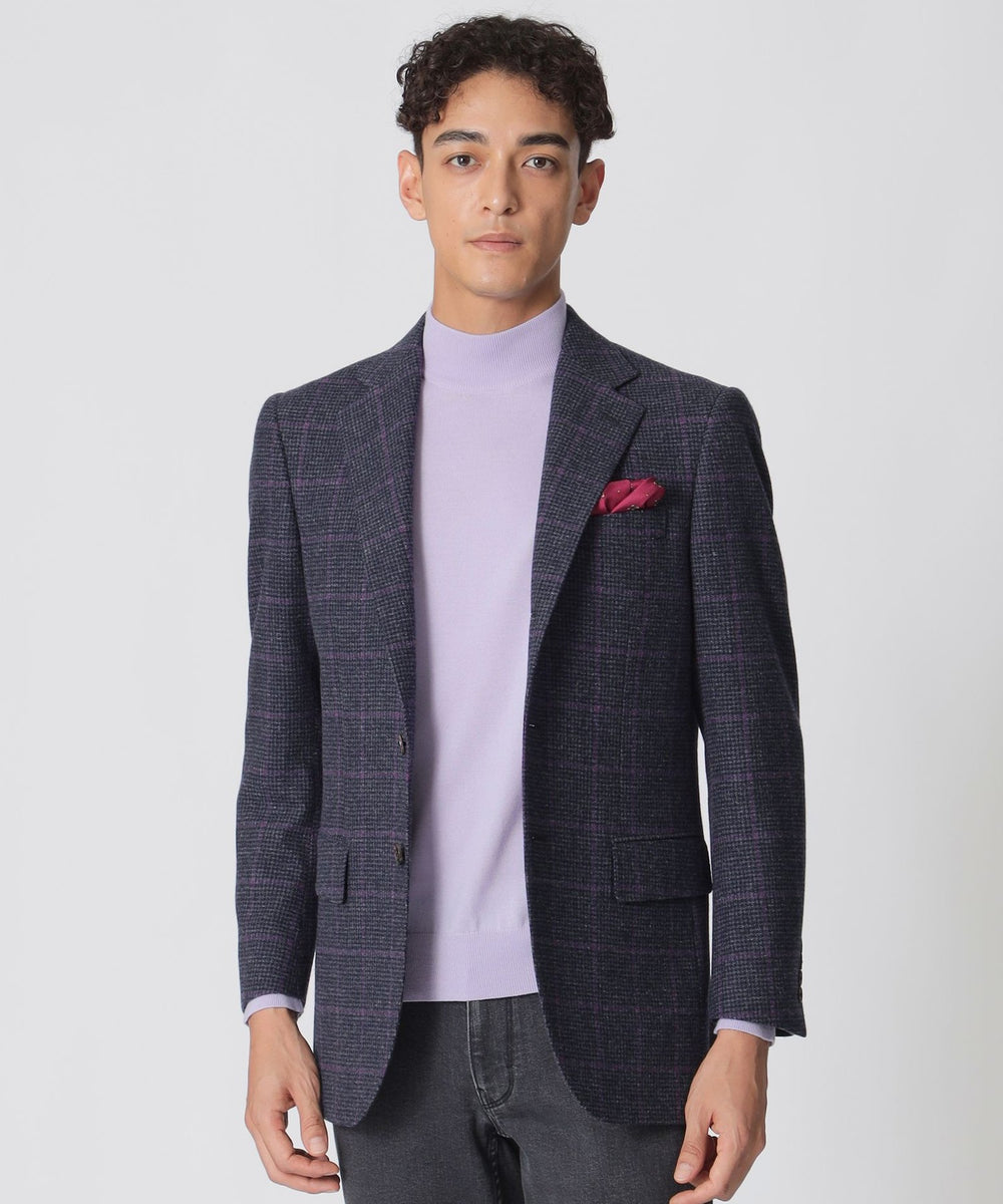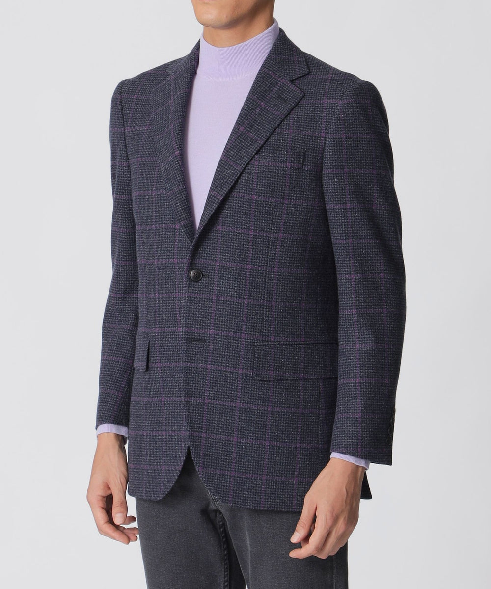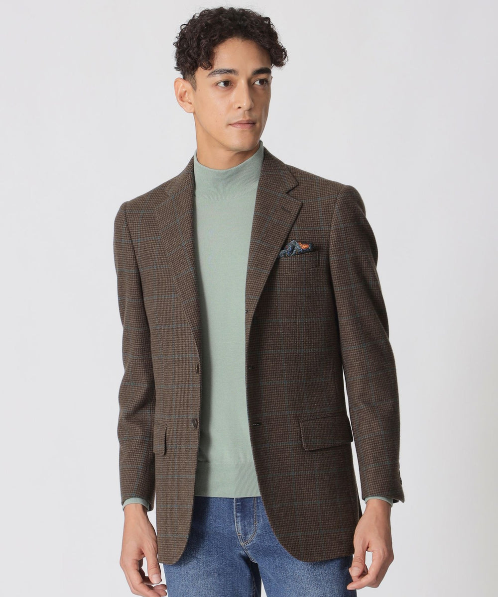 クラシカルな柄行きとツイーディーな見え方を一見感じさせながらも、その優しい柔らかさとフワリとした着心地が特徴のジャケットです