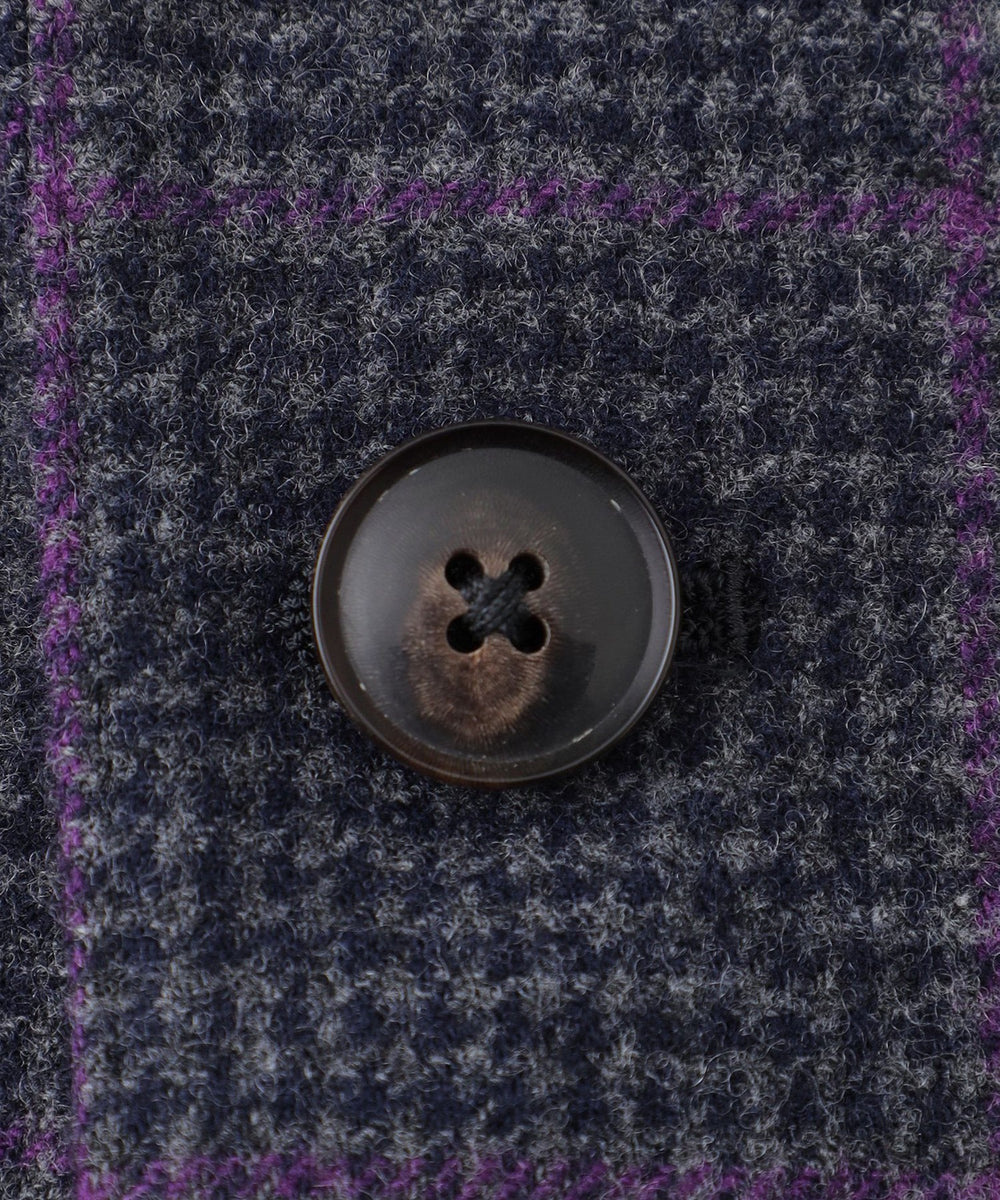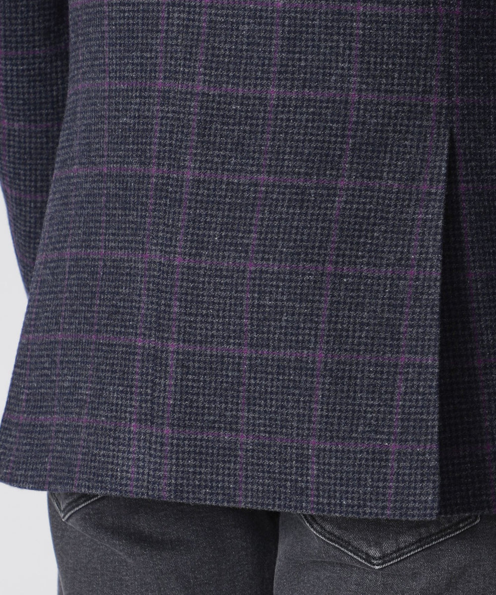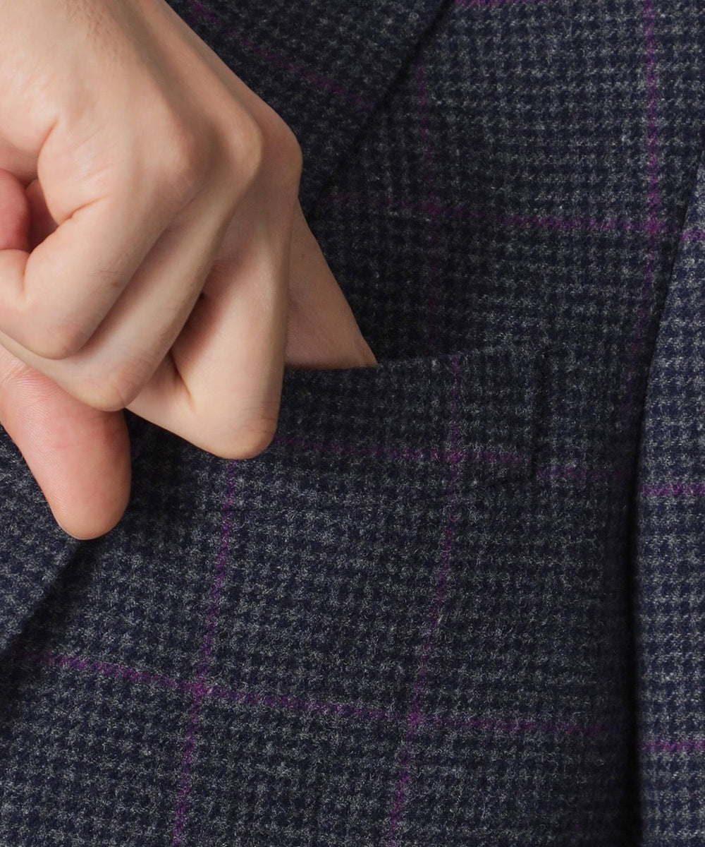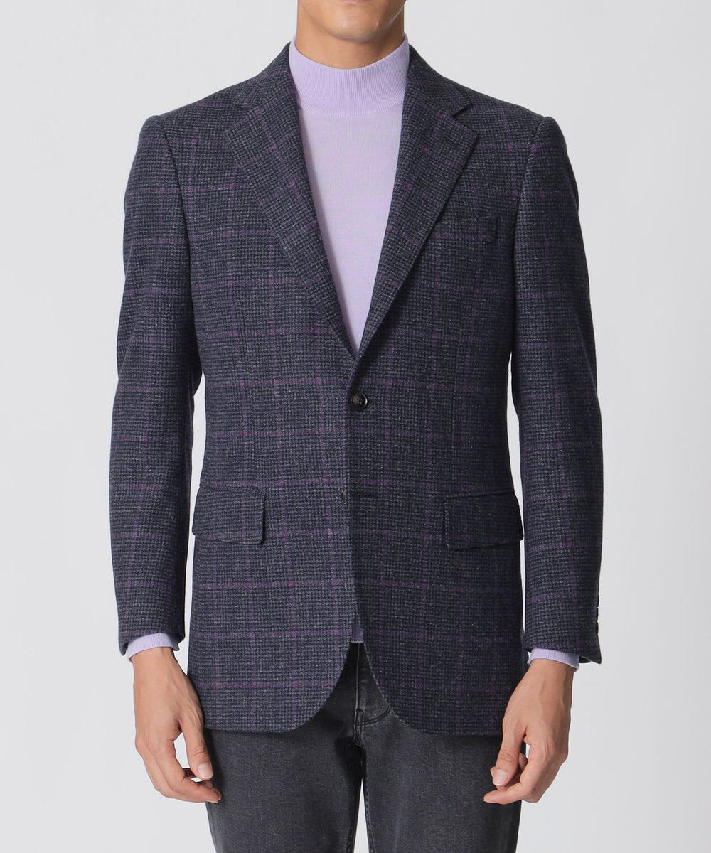 クラシカルな柄行きとツイーディーな見え方を一見感じさせながらも、その優しい柔らかさとフワリとした着心地が特徴のジャケットです
