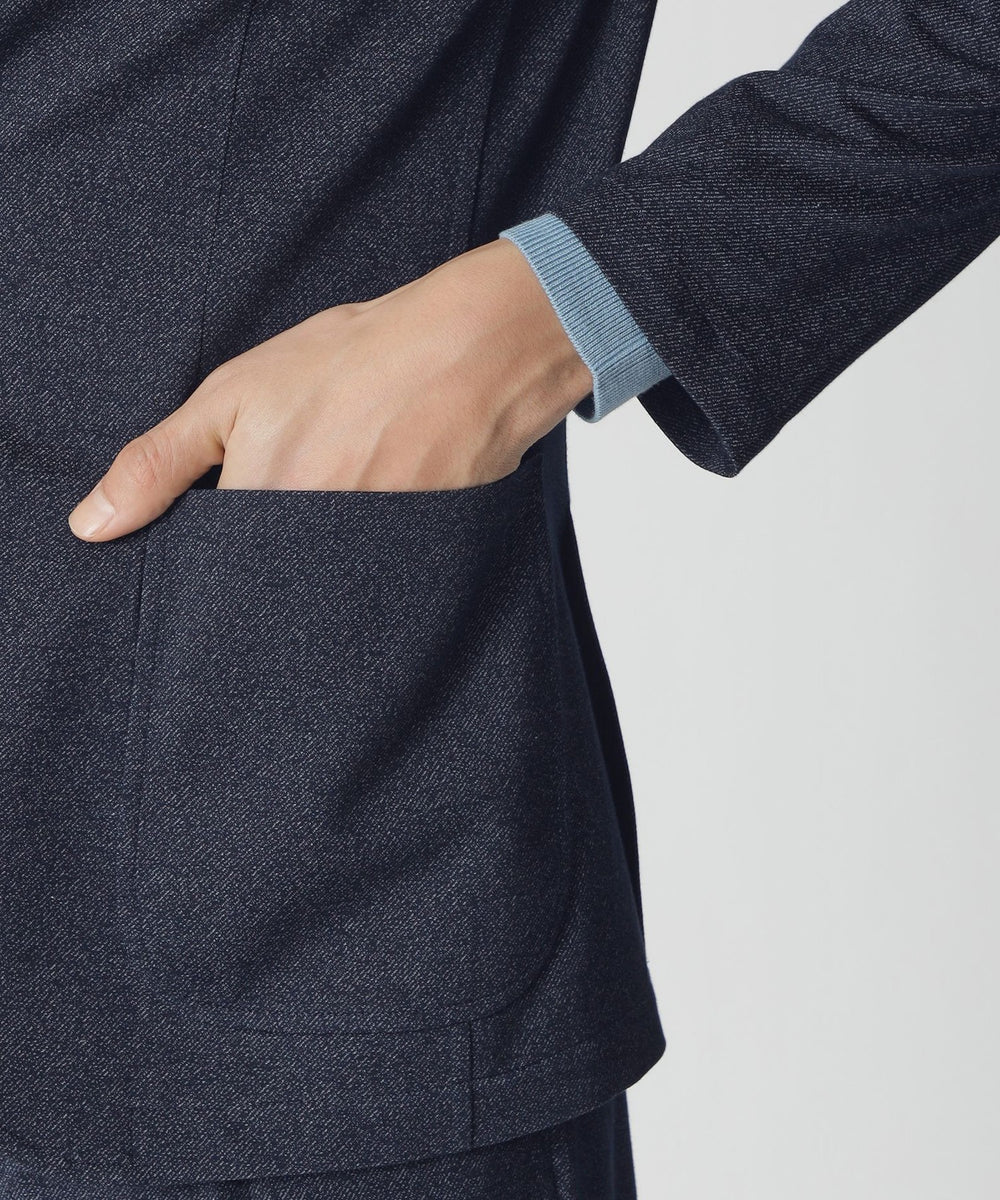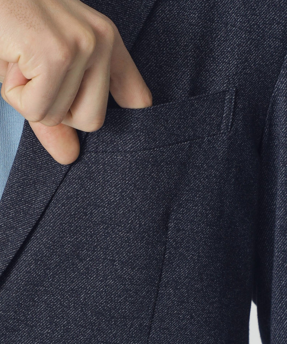 「MELANGE TWILL JERSEY」素材を使用した、ライトウェイトなジャケット。