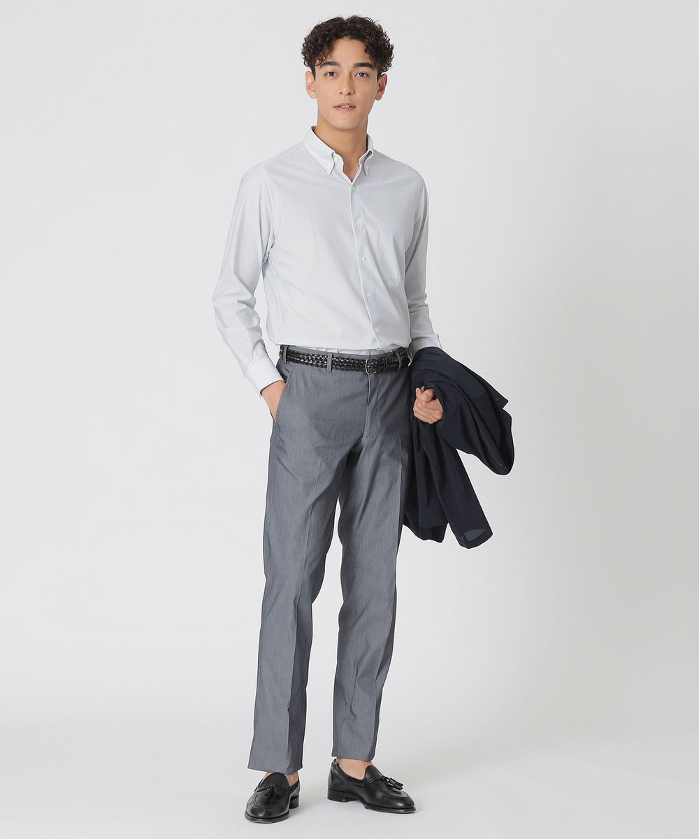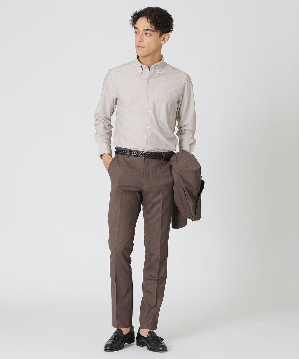 ボタンダウンデザインで、襟先にかけたシェイプ感と程よいロール感など、襟のライン設計にこだわっているので、ノーネクタイでもコーディネート可能なアイテムです。