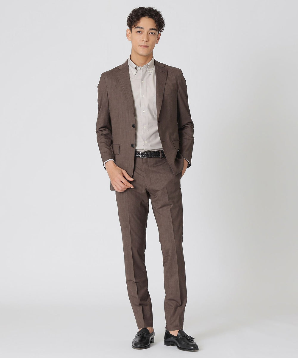 スタンダードフィットの設計で、ジャケット未着用時でもスマートに見えるシャツです。