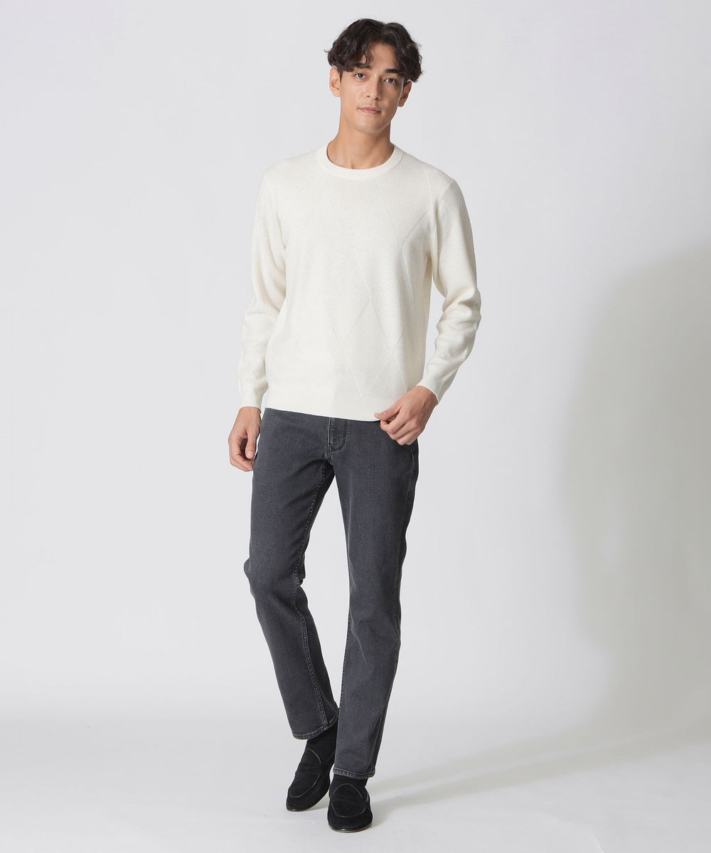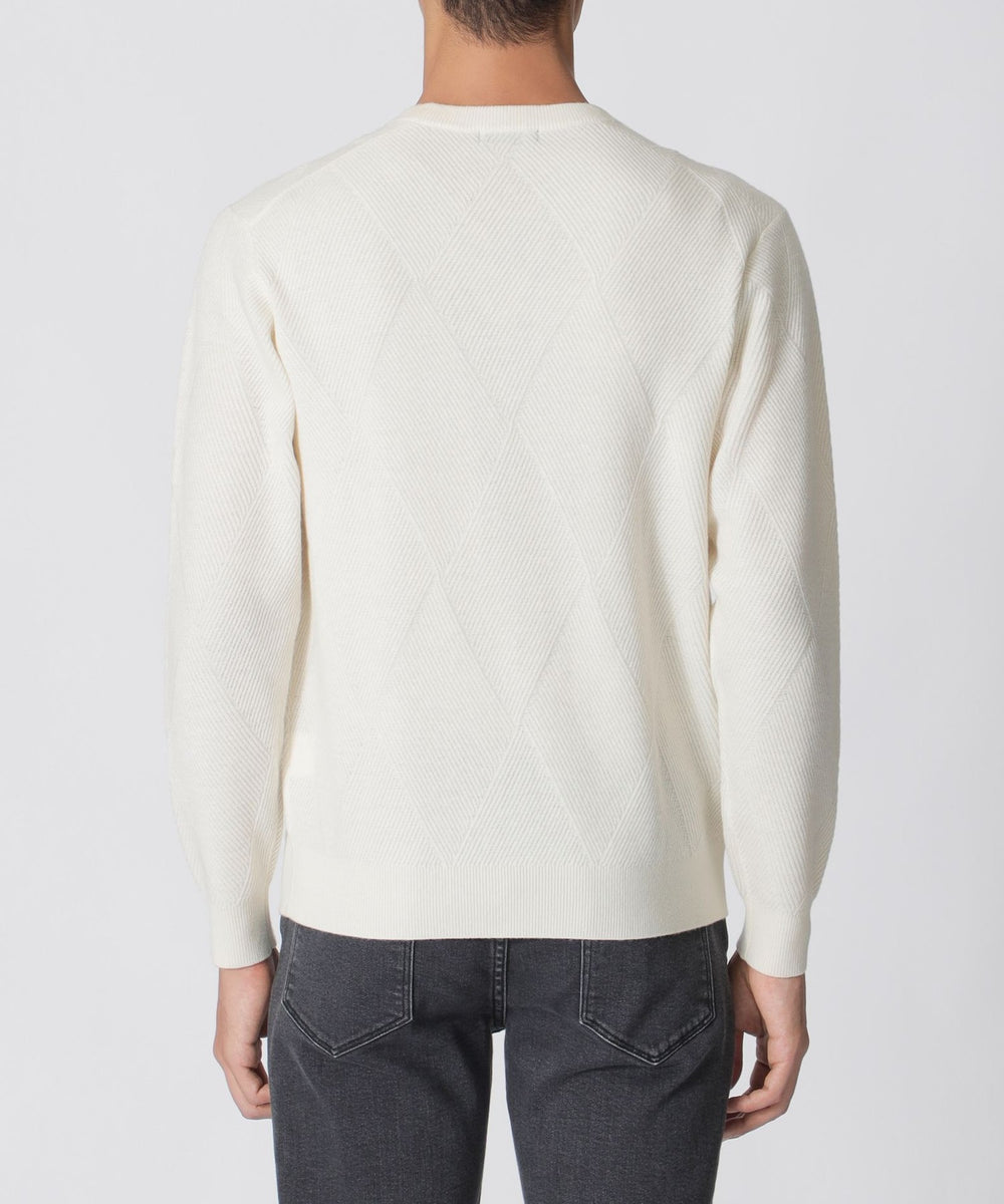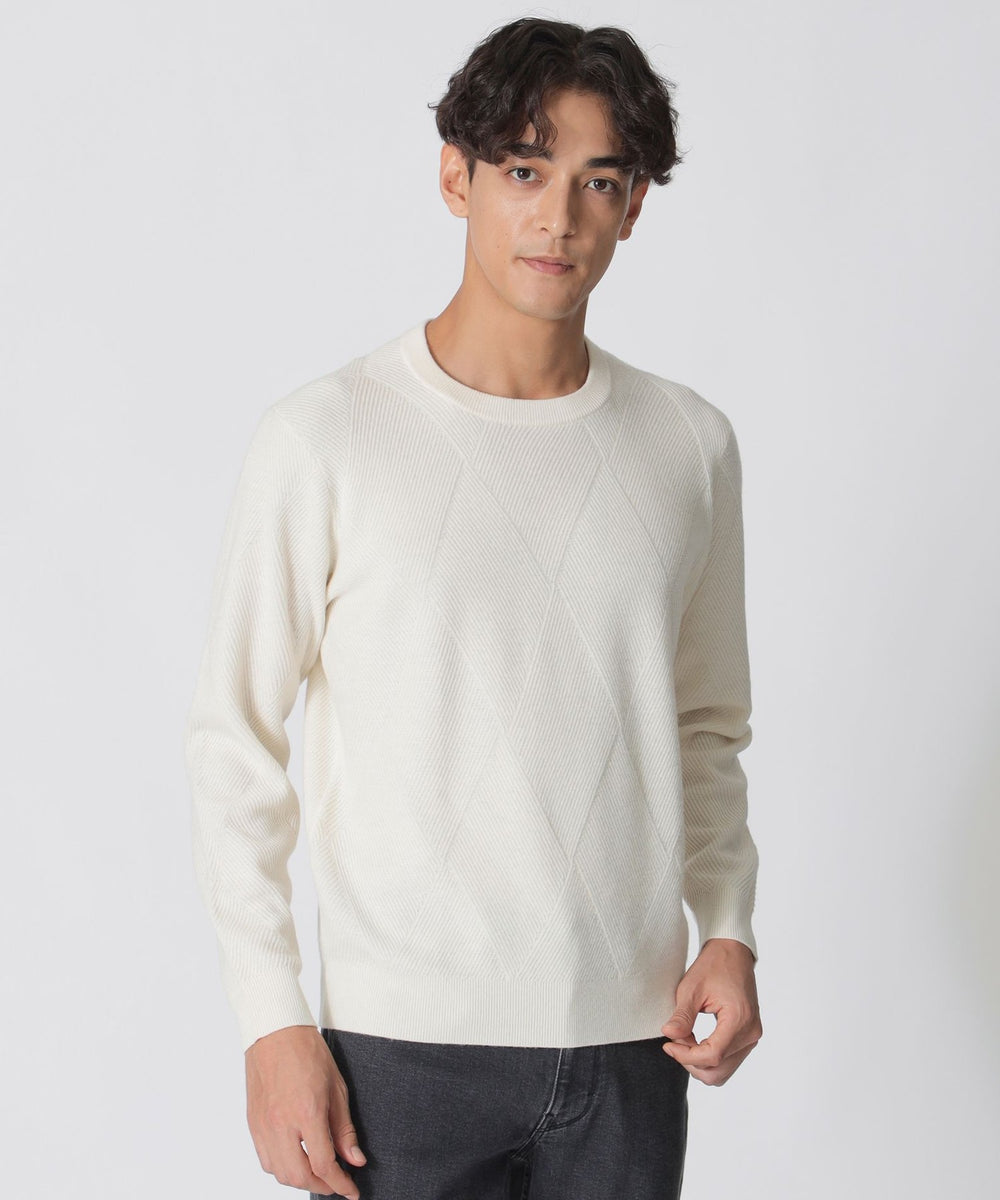 デザインは大柄のダイヤ柄のクルーネックセーターです。