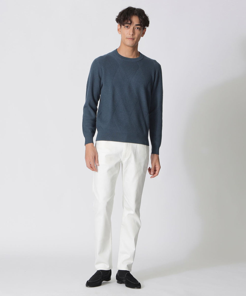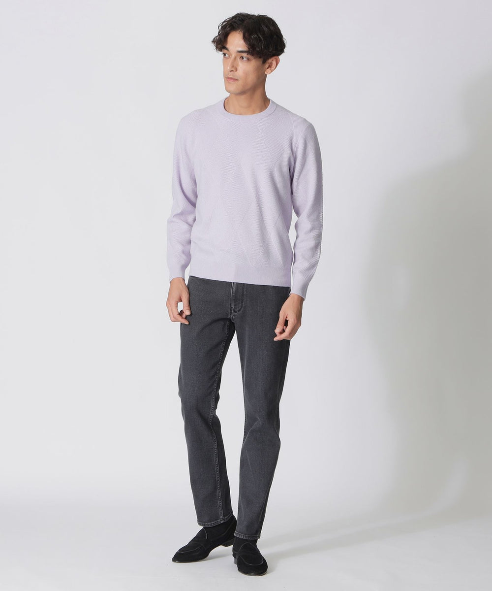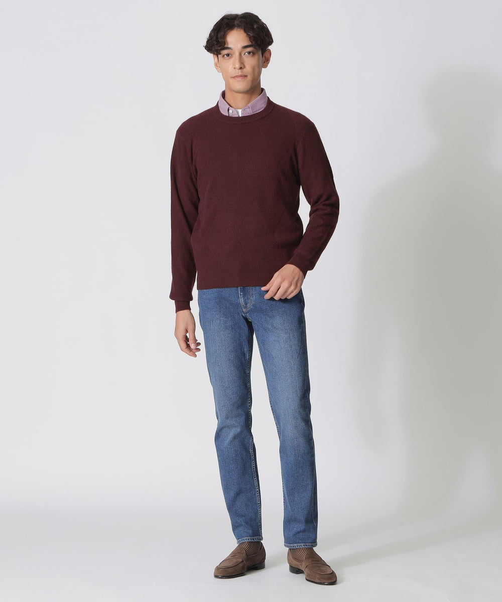 デザインは大柄のダイヤ柄のクルーネックセーターです。