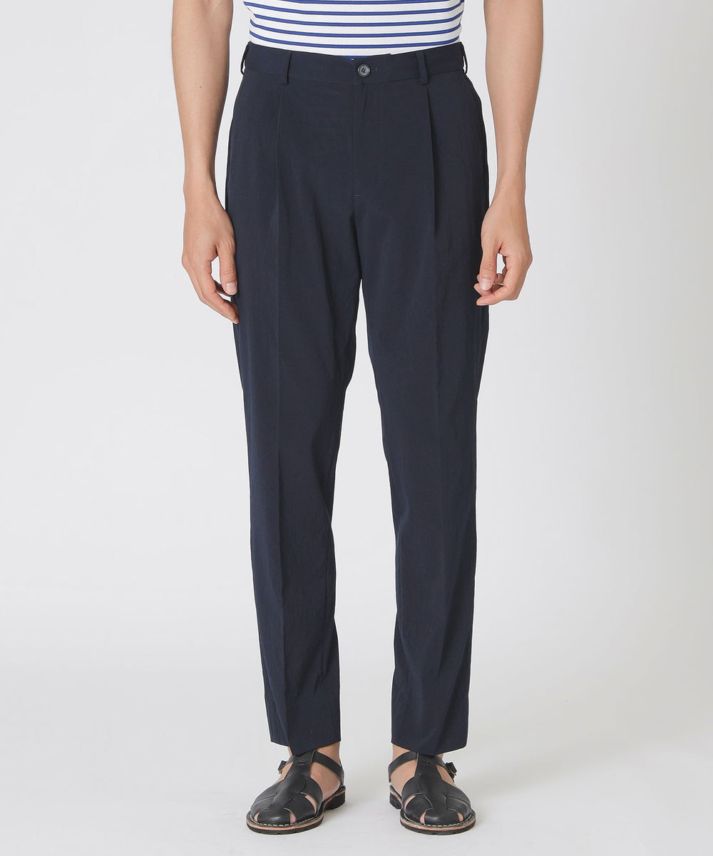 プリーツにより腰回りにほどよいゆとりがありながら裾にかけて程よいテーパードとなっているので着用時にスッキリとした印象になります。