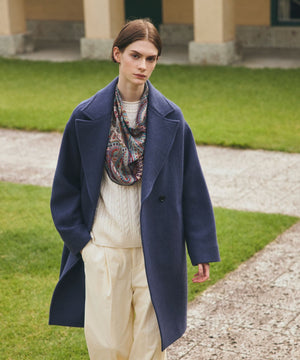 <圧倒的な軽さが特徴の配色ウールコート>