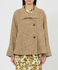 襟元を柔らかく仕上げ、着用した際の自然な落ち感がニュアンスのあるシルエットをつくりだします。