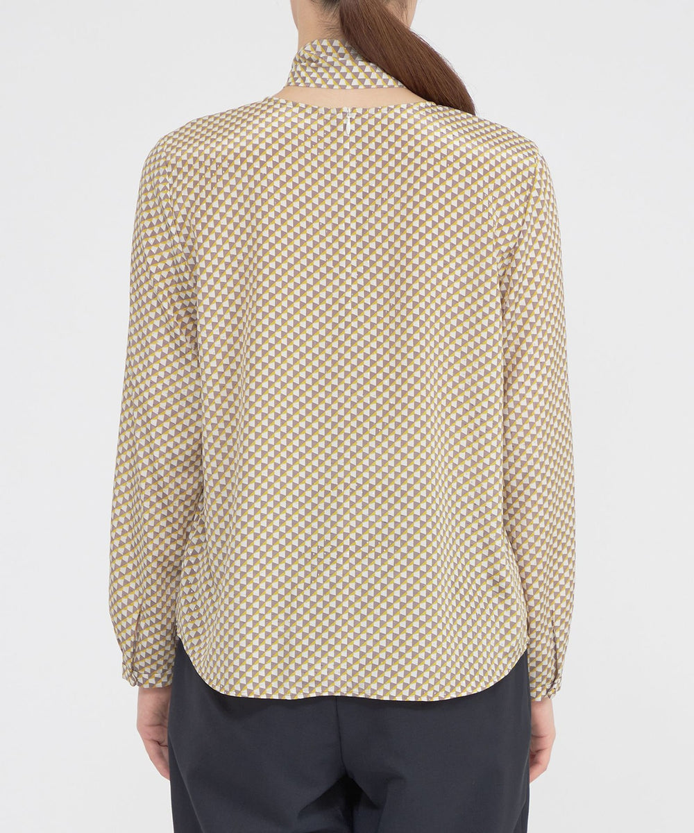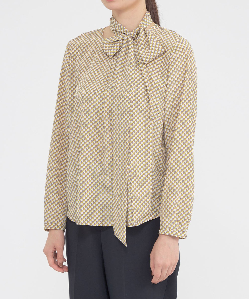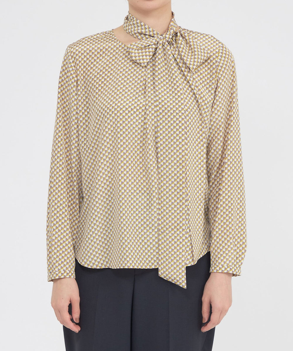 <タイアレンジで着こなしの幅が広がるプリントブラウス>