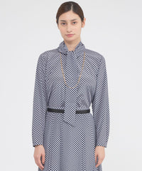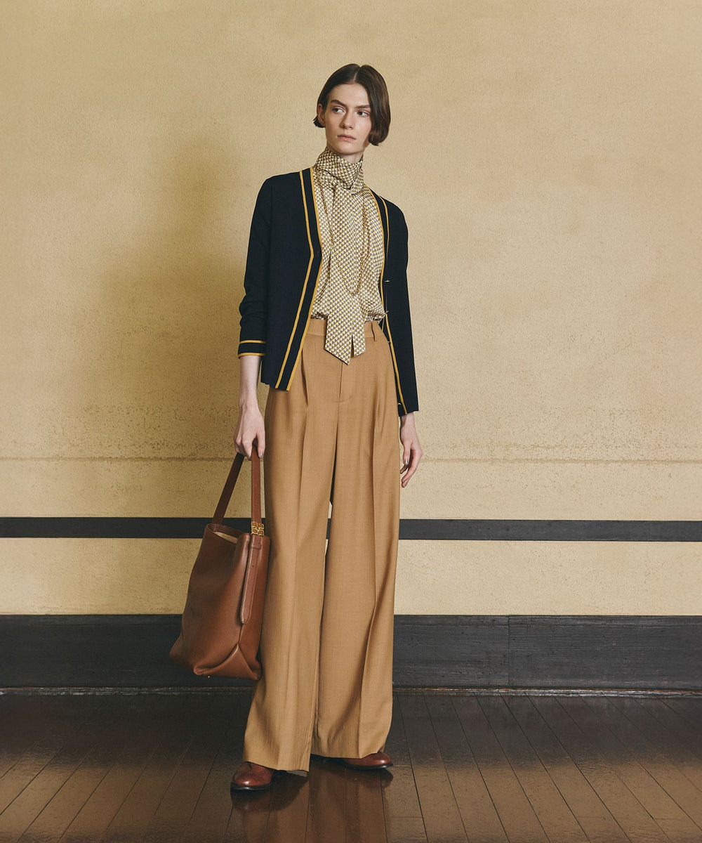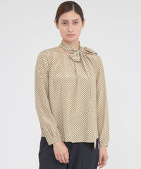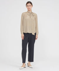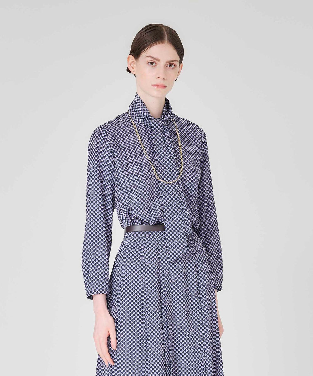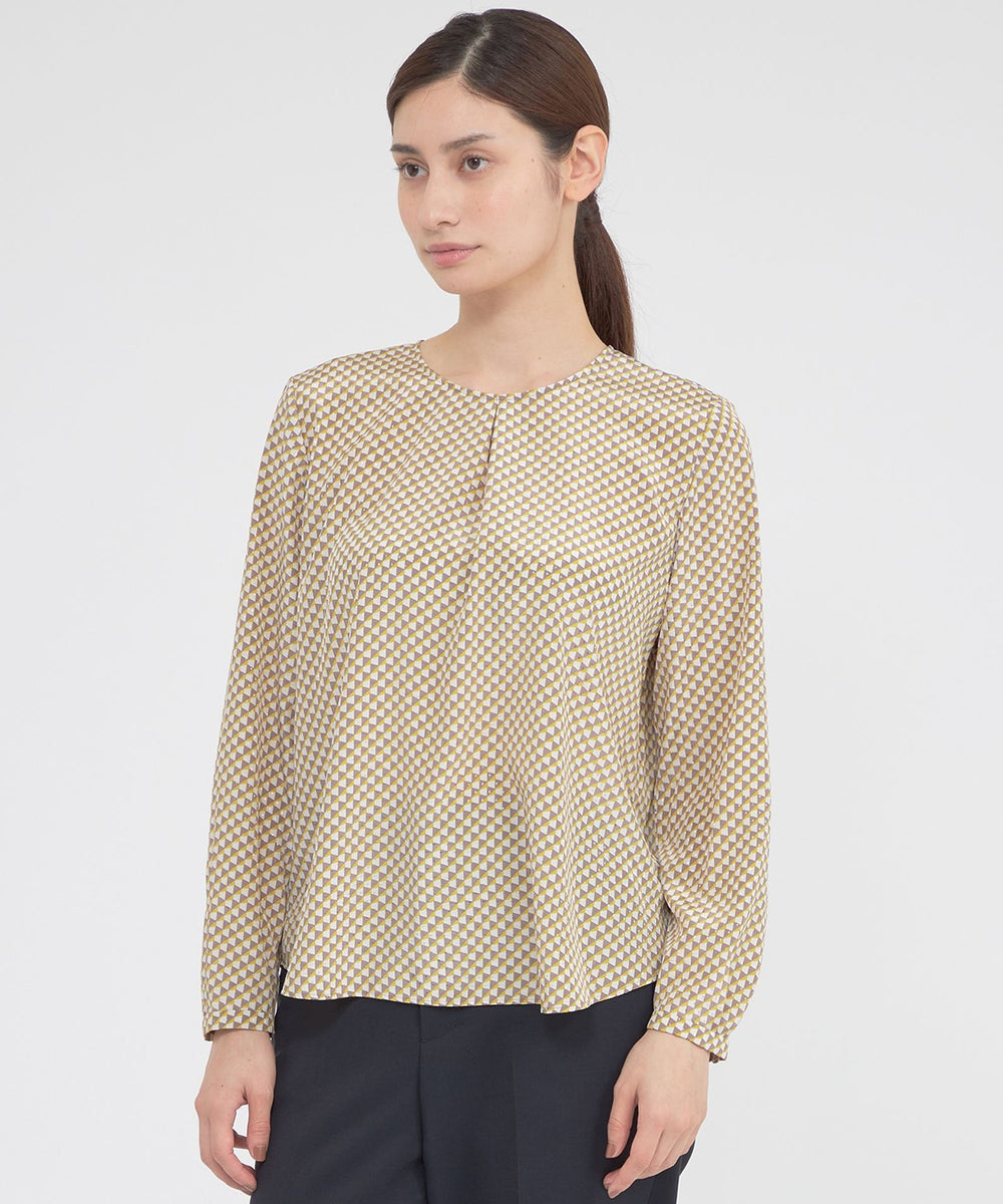 <タイアレンジで着こなしの幅が広がるプリントブラウス>