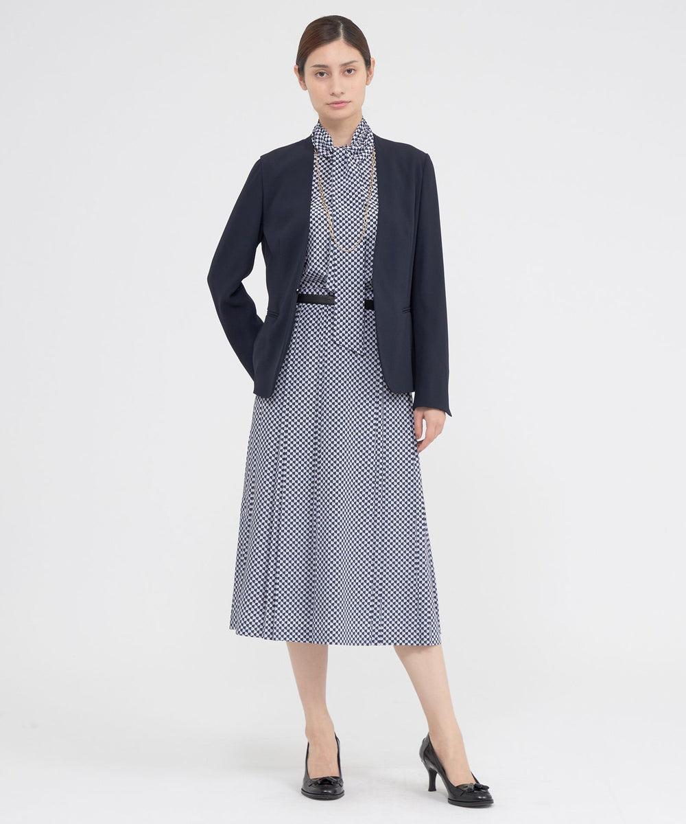 ジャケットのインナーや同素材のスカート(K1S07616)とのセットアップでワンピース見えのコーディネートもおすすめです。
