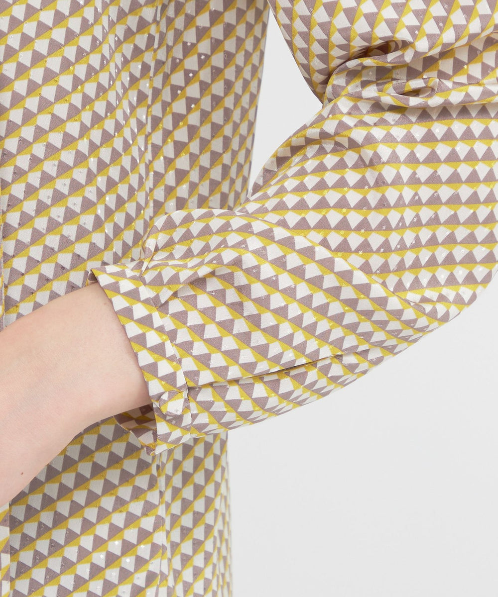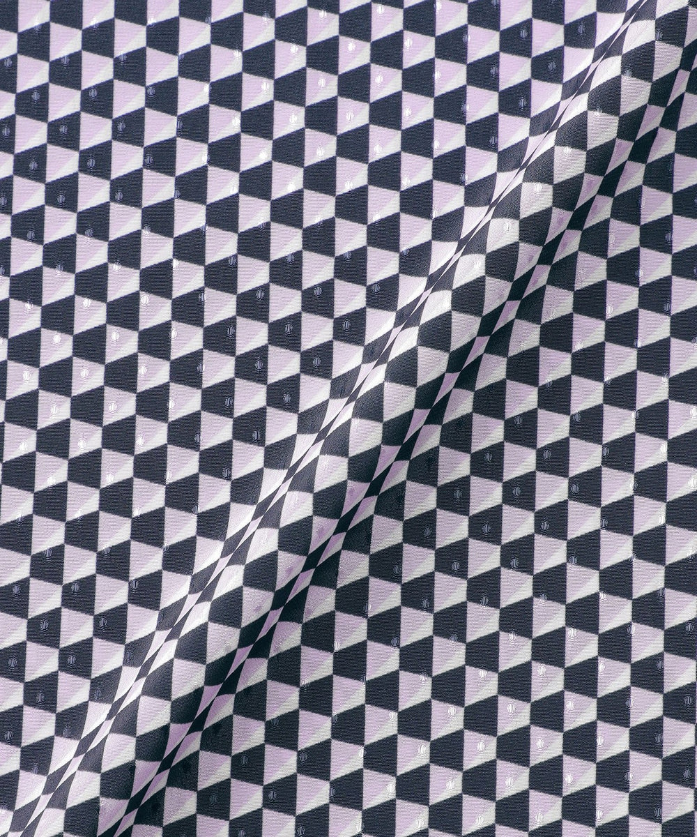 素材感のある生地にシャープな印象の幾何学をプリントしたエレガントな素材です。