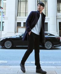 あえて装飾を抑えることで素材の上質さが際立たせた一着。シックな色味とウールの品のある光沢がラグジュアリーな雰囲気を演出するEPOCA UOMOの定番コート