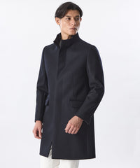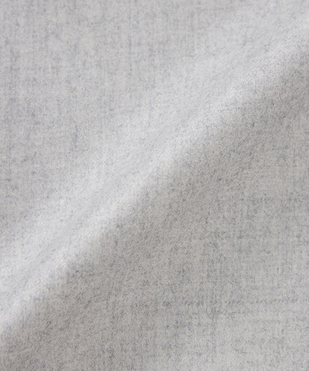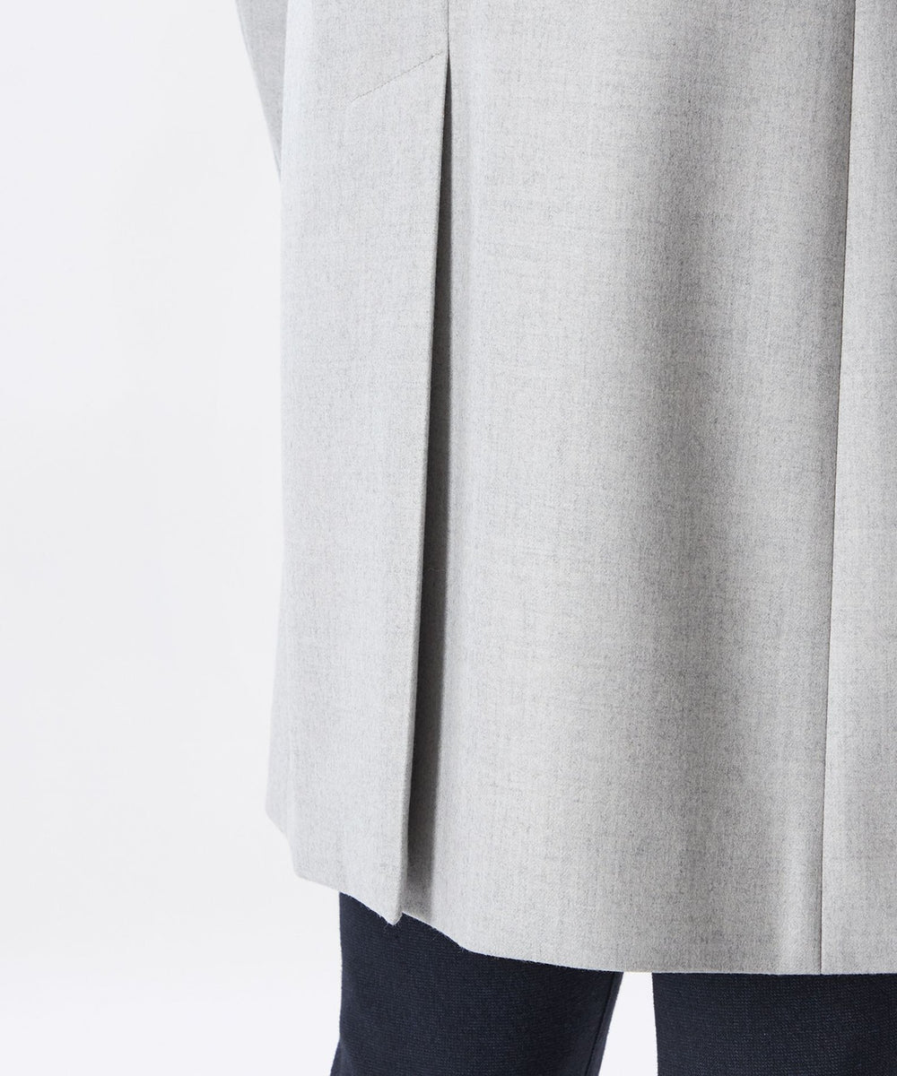 世界三大ウール生産地のひとつと言われている尾州地区の厳選素材を使用。通常コートに用いる紡毛素材ではなく、スーツなどで使用される梳毛糸を強圧縮して仕上げることで、艶のある滑らかな深みのある色目を表現。