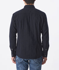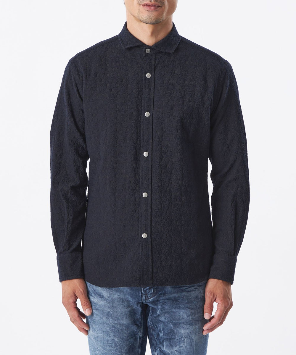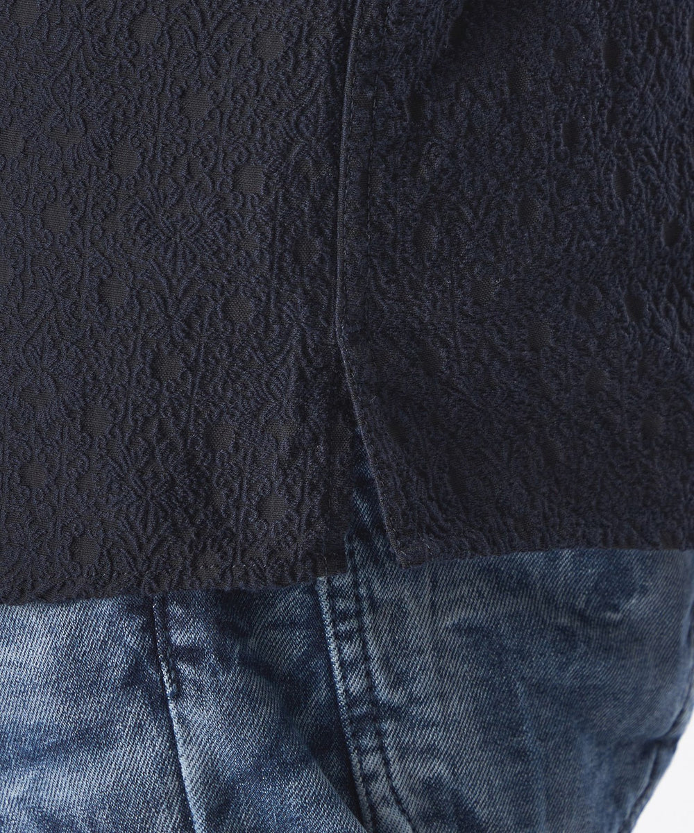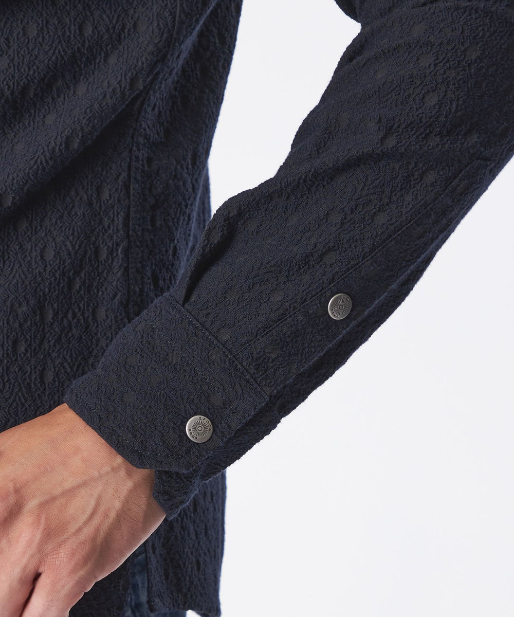 立体的な装飾模様を纏った大人カジュアルシャツ