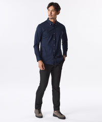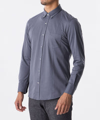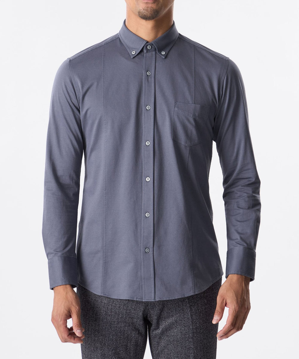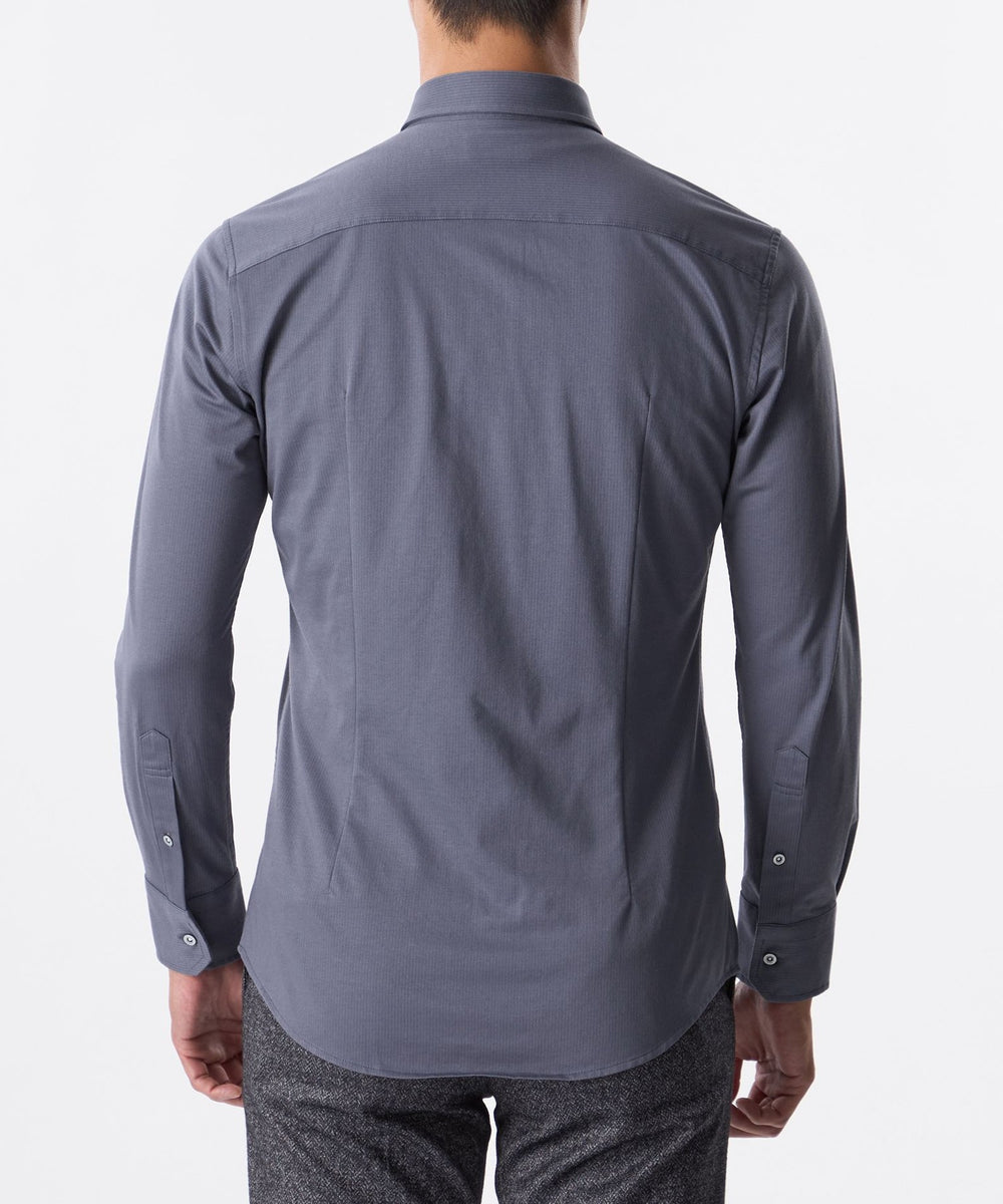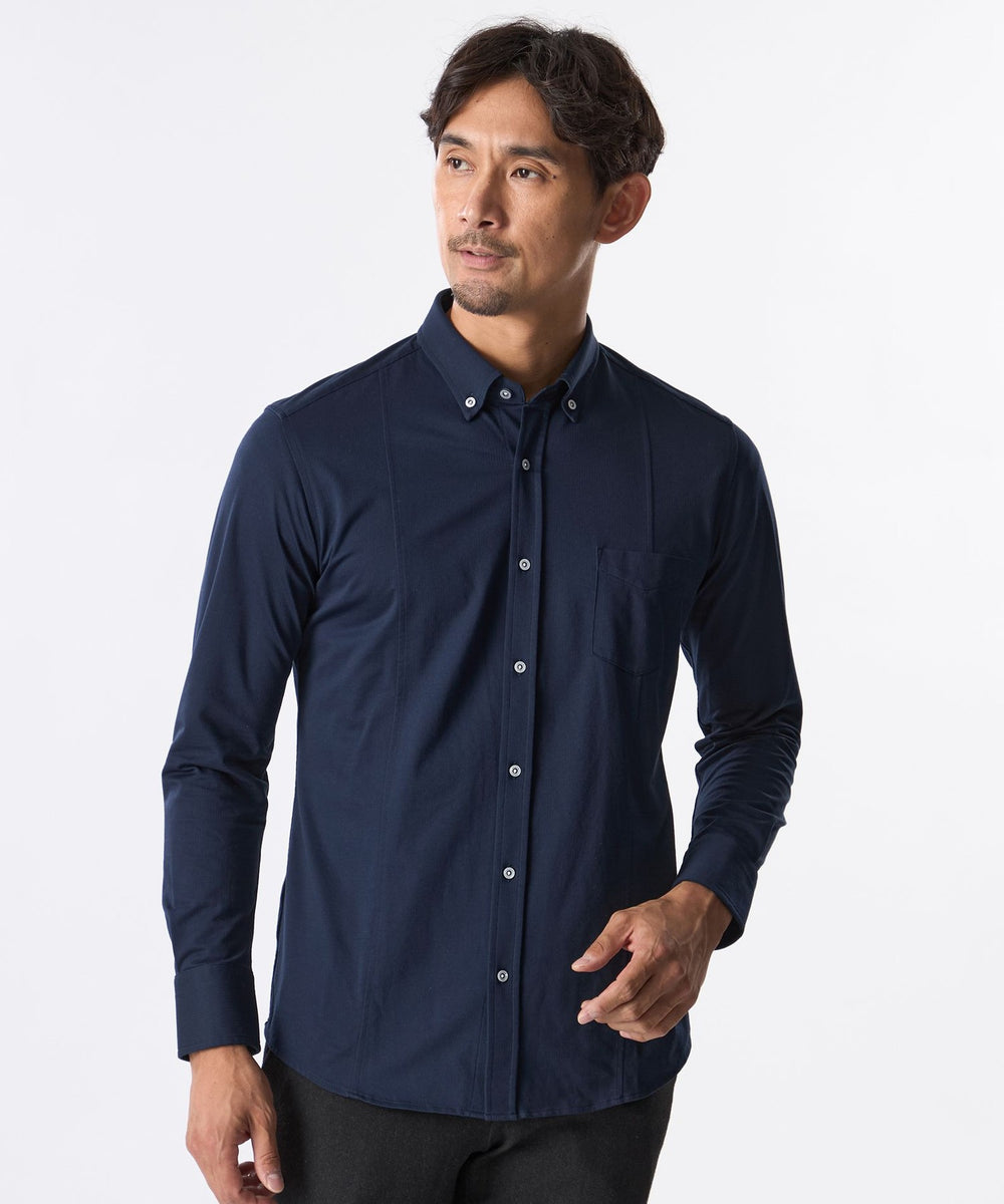 国内の厳選素材を使用したカジュアルシャツ。ブライトポリエステルを使用することで上品で高級感のある仕上がりに。