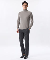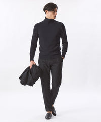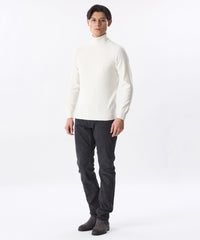 16.5μの高品質ウールの梳毛糸を採用。高品質ウールならではの光沢としっとりと肌に馴染む柔らかな風合いが特長で、タートルネックで気になる首回りのチクチクも抑えられる。