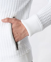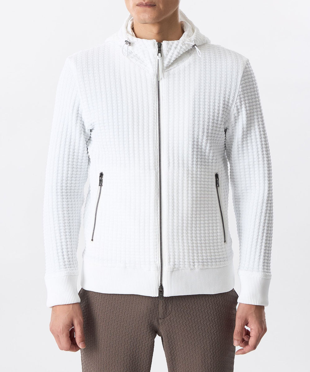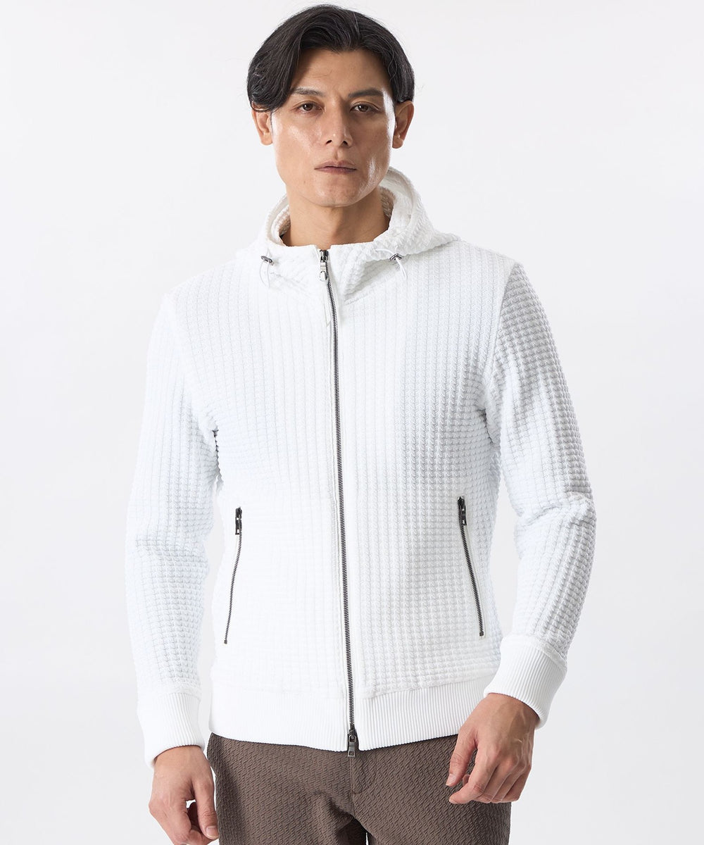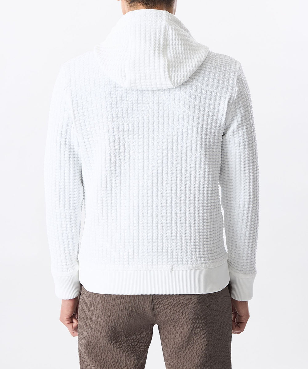 立体仕上げの凹凸編み柄ニットパーカ