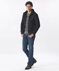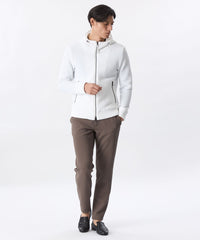 フルジップなので着脱しやすく、持ち運びもしやすいため、Tシャツ合わせで、デニムやドローコードパンツとのコーディネートに多用できるアイテム。
