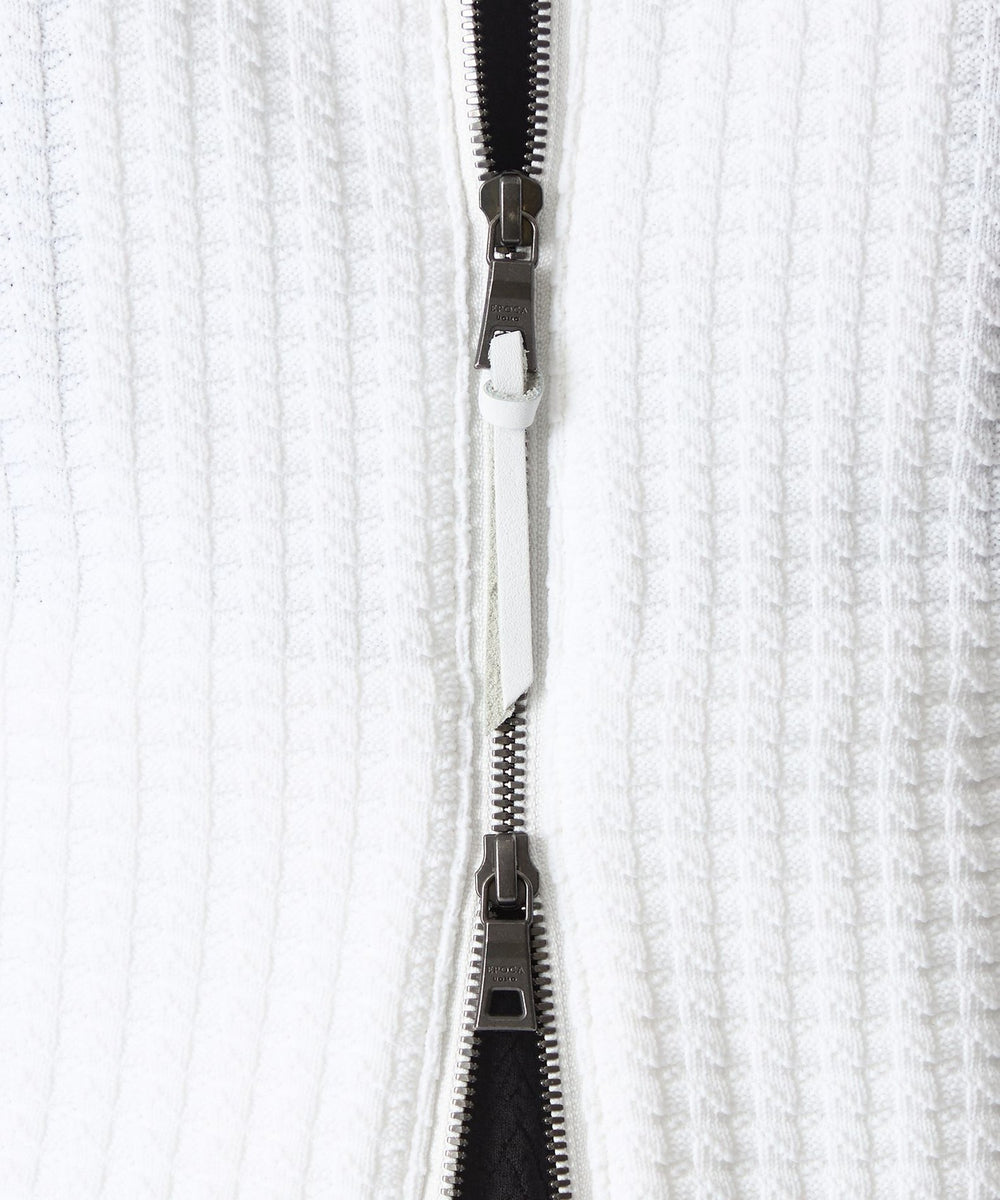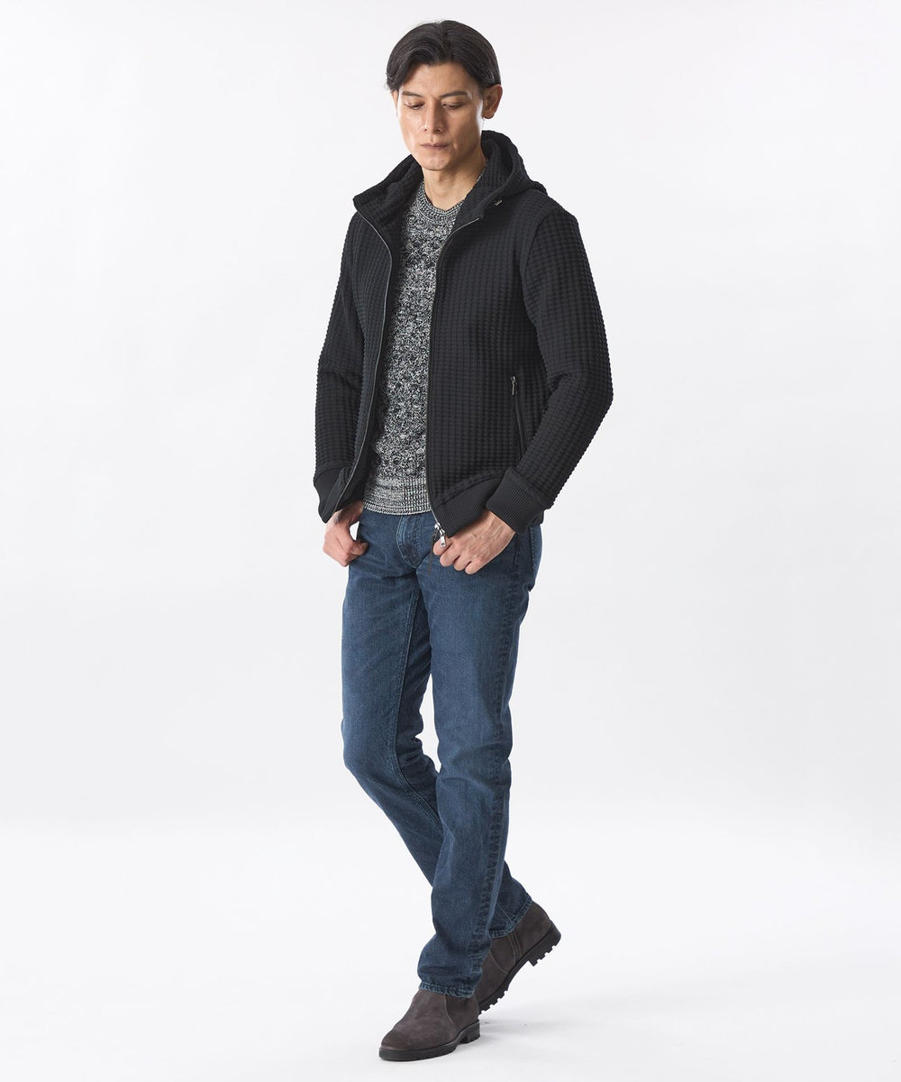 裁断縫製で仕立てたニットパーカ。パターンを活かした立体的な仕上がりが特徴で、なんといっても存在感抜群の編み柄が秀逸。