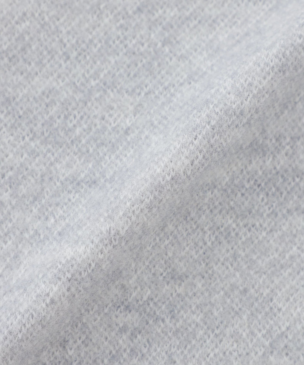 細番手の未防縮ウールとポリエステルで作成した編地を茹でる事で全体的に縮め、目を詰めた圧縮ニット素材を使用。この手法によりハリコシと弾力、キックバック性、保温力に優れた生地に仕上げ、更にポリエステルと一緒に編み立てる事で軽量に。