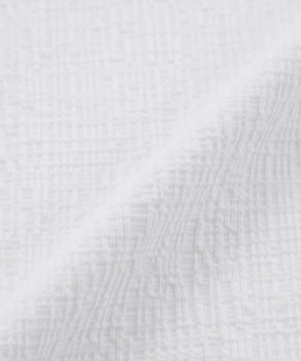 ダブルジャカード編みにて凹凸で表現したタテヨコライン柄の生地を使用。柔らかさ、高い伸縮性がポイント。