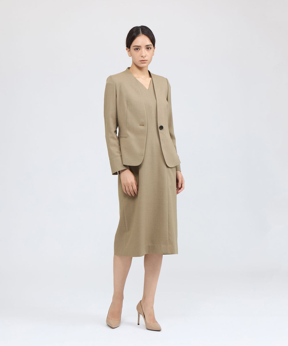 ケアがしやすい合成繊維でありながらも、天然素材のような柔らかな質感とナチュラルな表情を併せ持った素材です。3シーズン着用できる軽やかさも魅力です。防シワ性を備えており、ワーキングシーンにも嬉しい機能素材です。