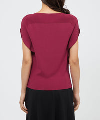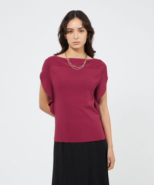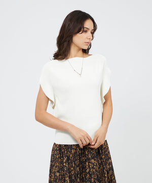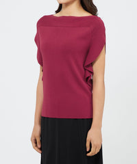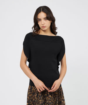 アーム周りのフリルが華やかさを演出するザインプルオーバーです。アーム下から衿ぐり、反対側のアーム下まで、前後ともに総針テープを施した凝ったディテールが特徴です。存在感のあるデザインながらもシルエットはすっきりとしており、オンオフ問わず幅広いスタリングに活躍する1枚です。