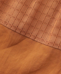 4種類の糸をカラミ織の織機でレースのような繊細な表情に織り上げた素材です。生地ができるまでに時間と技術を要する希少な素材で、独特な質感と立体感が特徴です。仕上げにソルベ加工を施すことで、しなやかなハリ・コシのあるオーガンジーのような風合いに、なめらかな手触りとシャリ感をプラスしました。