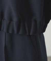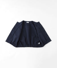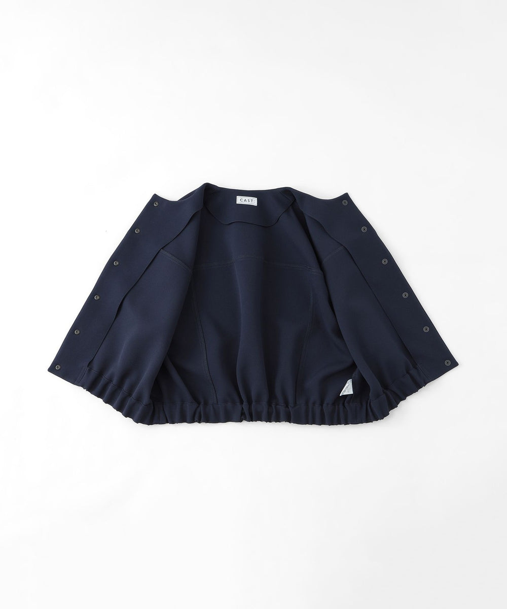 裾のゴムと前身頃にドット釦があることで、ブルゾンのような雰囲気にも仕上がっています。