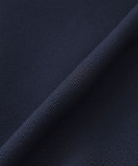 三重織のポリエステル素材です。ドライタッチな肌触りで、フォルムが出やすいふっくらとした生地感が特徴。