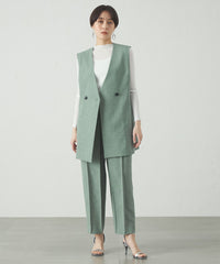 【雑誌掲載】【セットアップ対応/着回し抜群】リネンライクコンビショートジレ