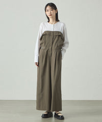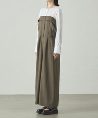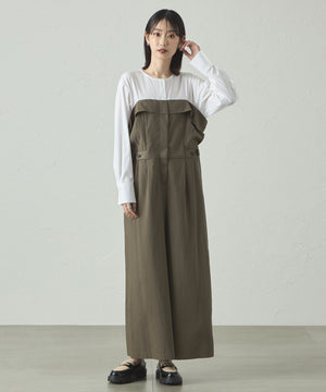 異素材コンビのオールインワン。ビスチェ付パンツとシャツをコンビさせた、CAST:らしいモードさが光るデザインです。