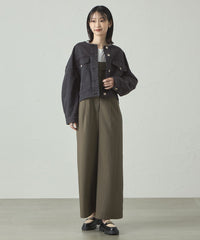 パンツはセミワイドなシルエット。脇部分はゆとりを持たせているので、体のラインを気にせず、ゆったりとした着心地が特徴です。