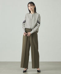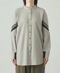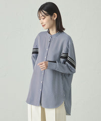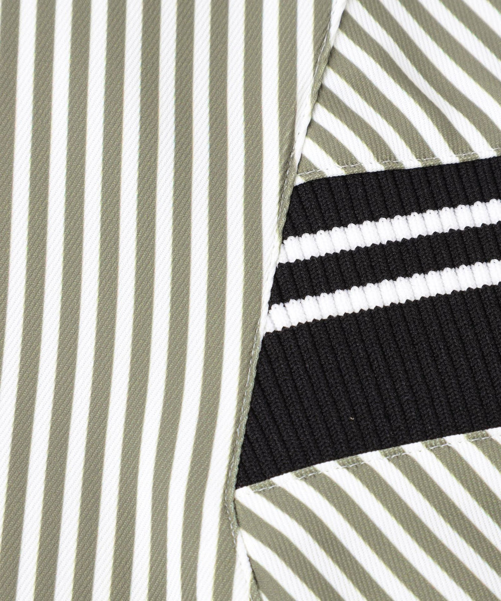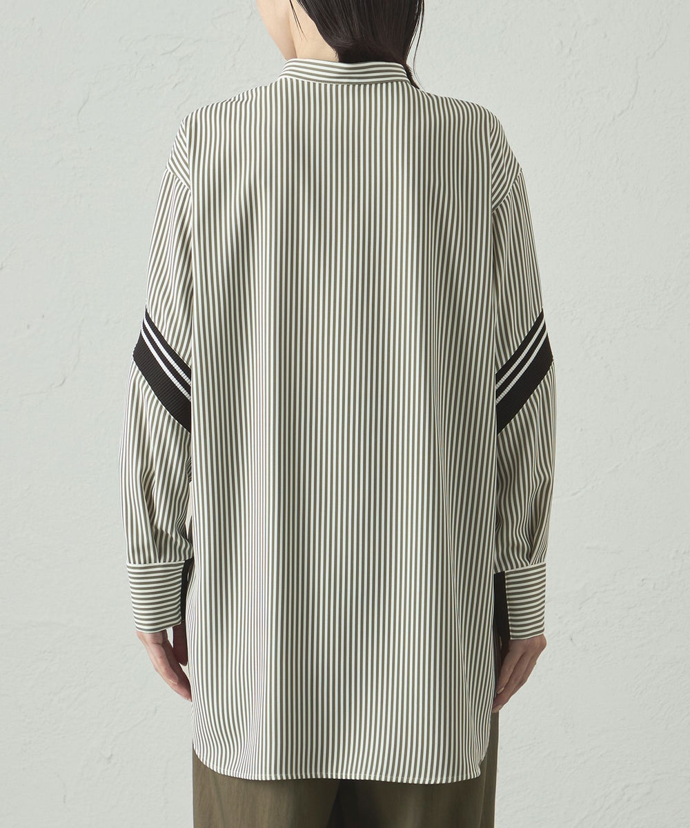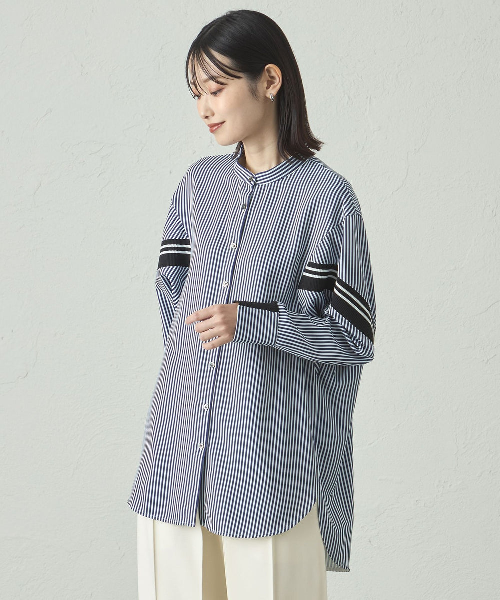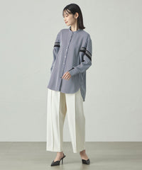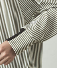 ストライプ柄でシャープな印象がありながらも、ラグランスリーブのゆったりシルエットでストレスフリーな着心地。袖部分にもニットリブが付いており、動きやすさがありつつ袖を上げた時にきちんと留まる計算された仕様。