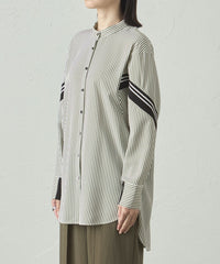 プリントしたストライプ柄の生地を使用したチュニックブラウス。