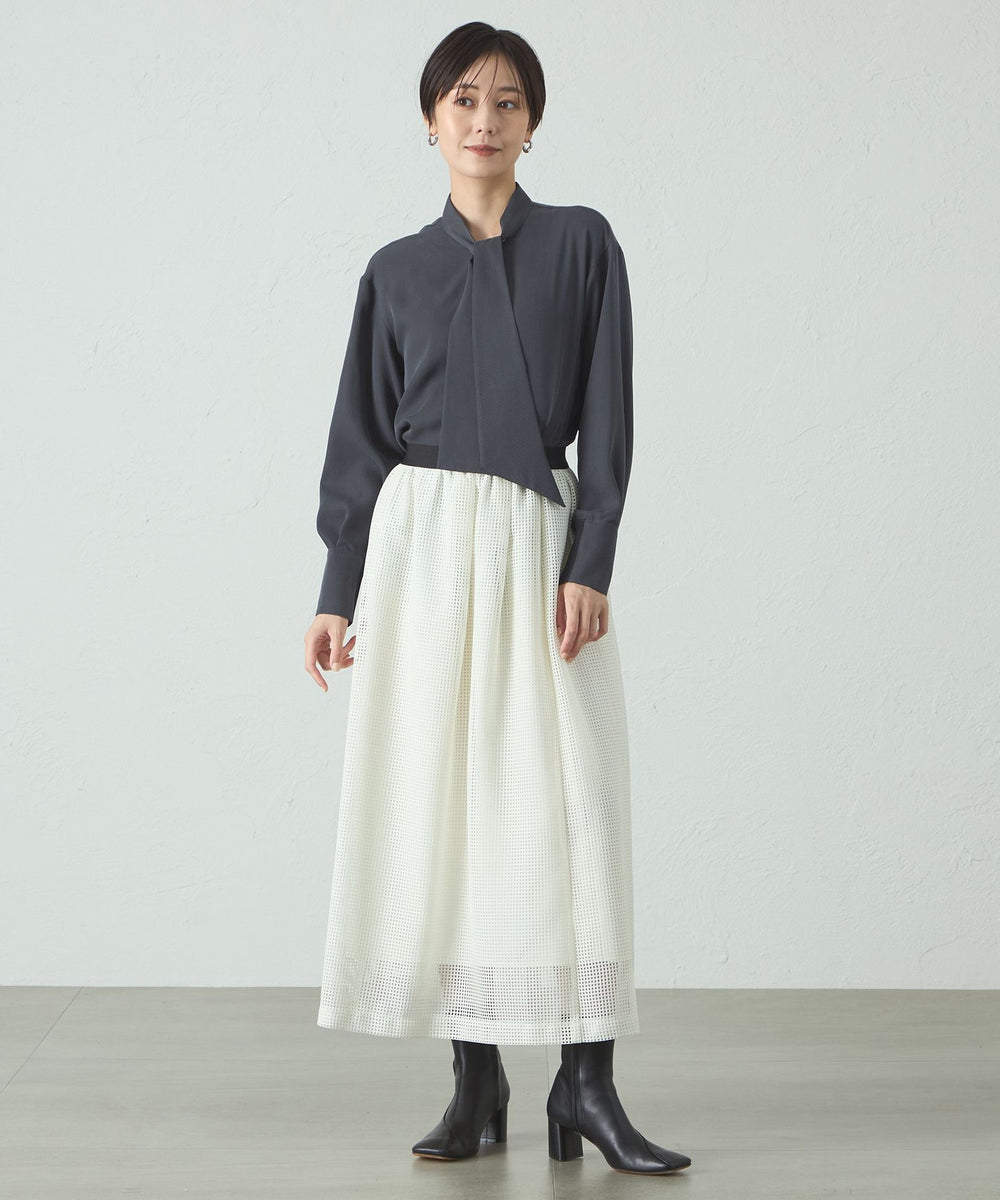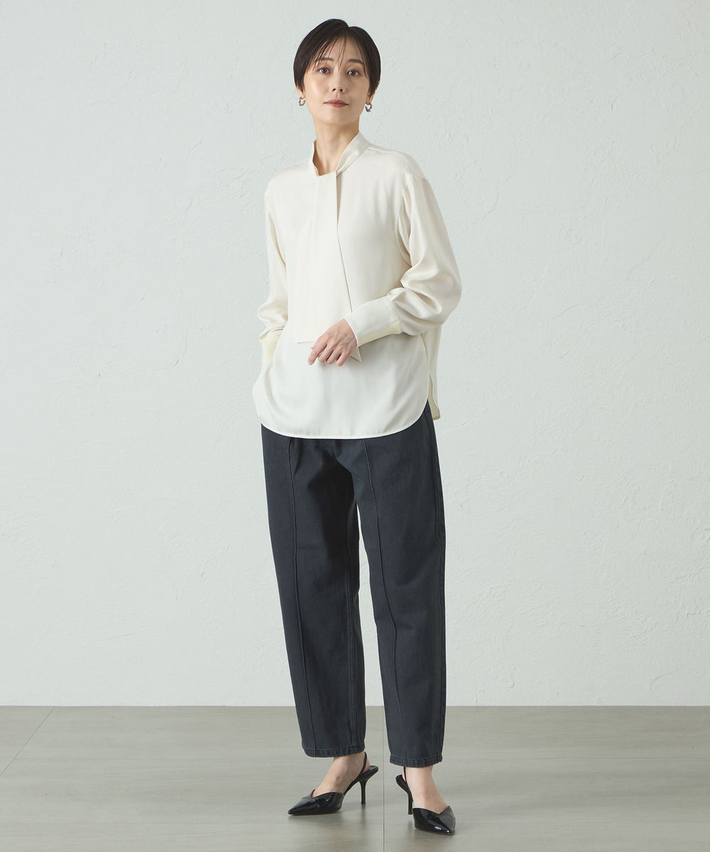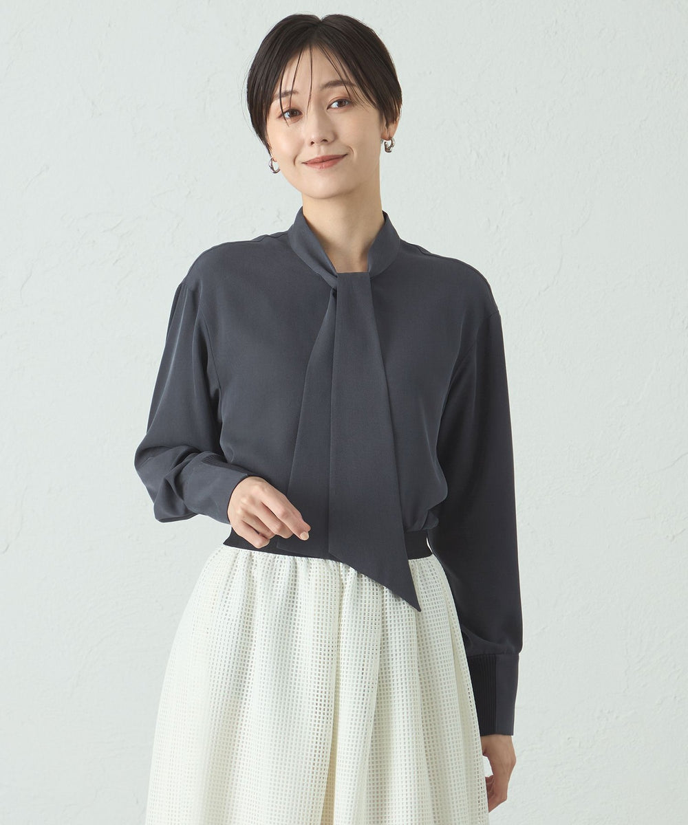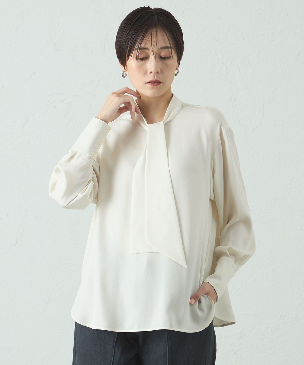 オンシーンにもカジュアルシーンにも活躍するボウタイブラウス。