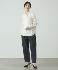 1枚でサマになるブラウス。ジャケットのインナーや、スティックパンツと合わせればお仕事コーデが完成します。