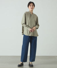 袖口にリブをプラスしており、デザイン的にも機能的にも使いやすいブラウスです。