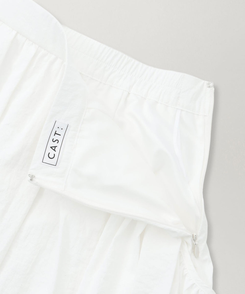 ポケットにもたっぷりとギャザーを入れることで、履くだけでほどよいボリュームと華やかさが加わり、シンプルなトップス合わせでも一気にきまります。
